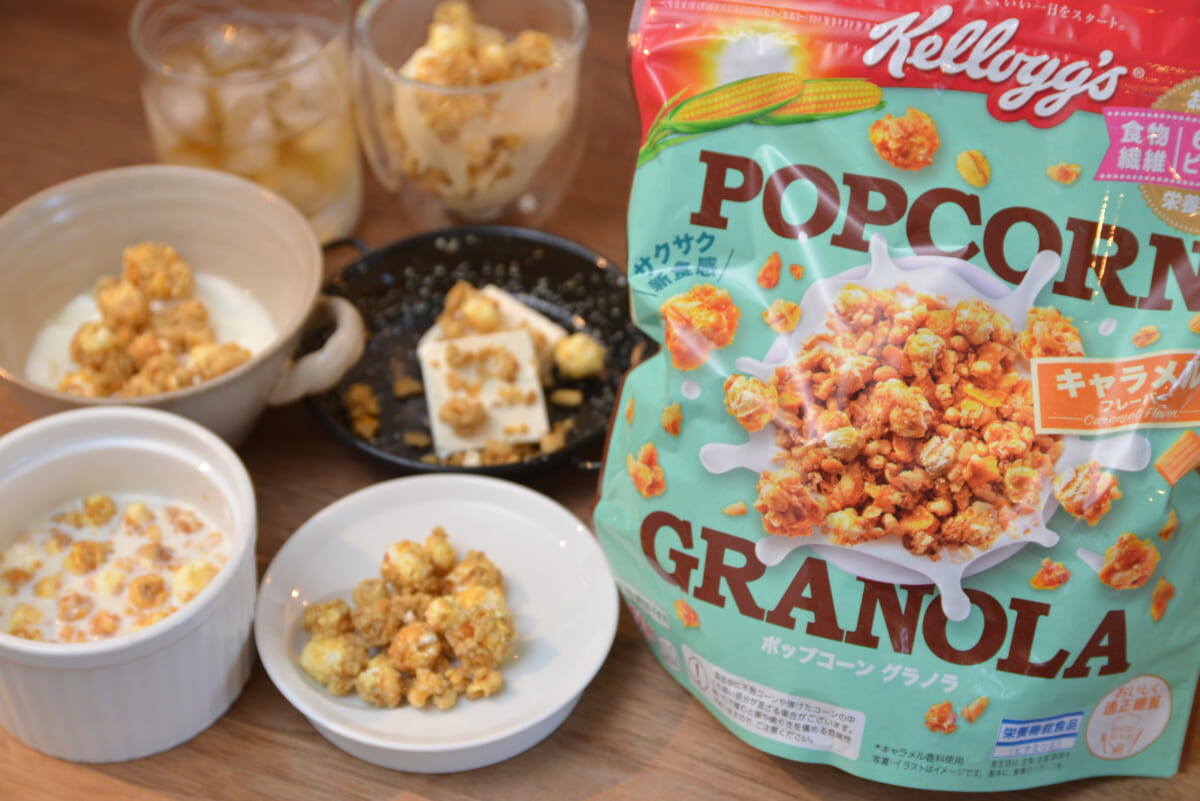 コーンフレークはシリアルの定番ですが、同じ原材料から作られるポップコーンというのはありそうでなかった新発想。果たしてその相性は、そしてどんな味わいなのか。アレンジなどもいくつか試しつつ、おいしさに迫ります。