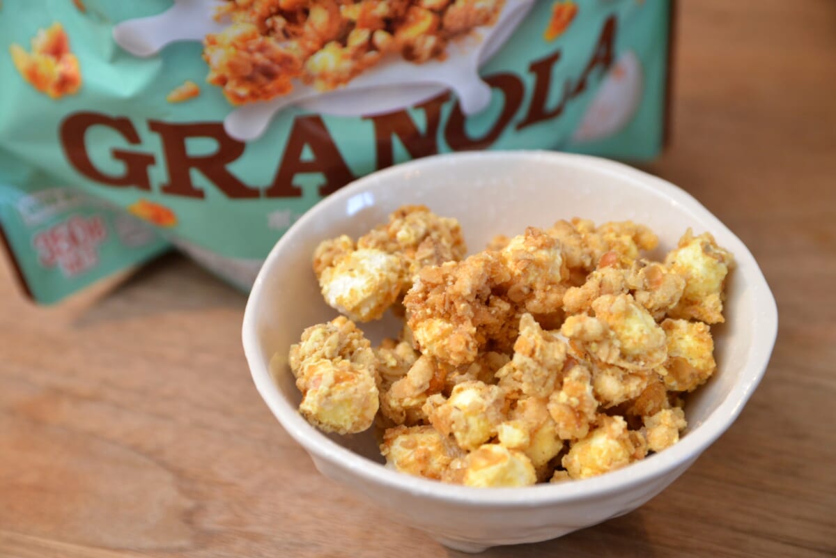 ポップコーンには「マッシュルーム型」と「バタフライ型」の2種類があるのですが、同商品に採用されているのは前者。よりふわっと軽い「マッシュルーム型」に、ザクザクしたグラノーラをブレンドしています。