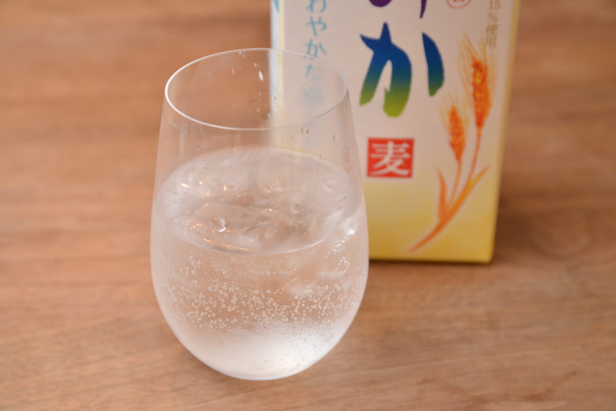 まずは「イカ天瀬戸内れもん味にぴったりの麦焼酎かのか」から飲んでみました。飲み方は、水割りかソーダ割、またはロックがオススメとのことで、水割りから試します。