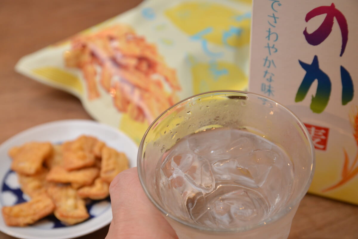麦焼酎には、麦チョコを思わせるような甘香ばしいタイプも多いのですが、「イカ天瀬戸内れもん味にぴったりの麦焼酎かのか」のアプローチはライトで華やかな方向性。ドンピシャにマッチするという「イカ天瀬戸内れもん味」との相性はどうでしょうか。