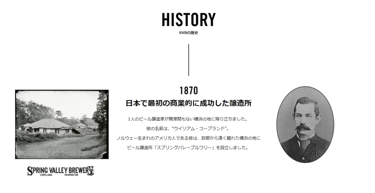 「SPRING VALLEY」というのは、約130年前に横浜で設立された「スプリングバレー・ブルワリー」という、日本で初めて商業的な成功を収めたビール醸造所のこと。そしてキリンビールの前身「ジャパン・ブルワリー・カンパニー」は、その跡地に設立されました。つまりはオマージュ。
