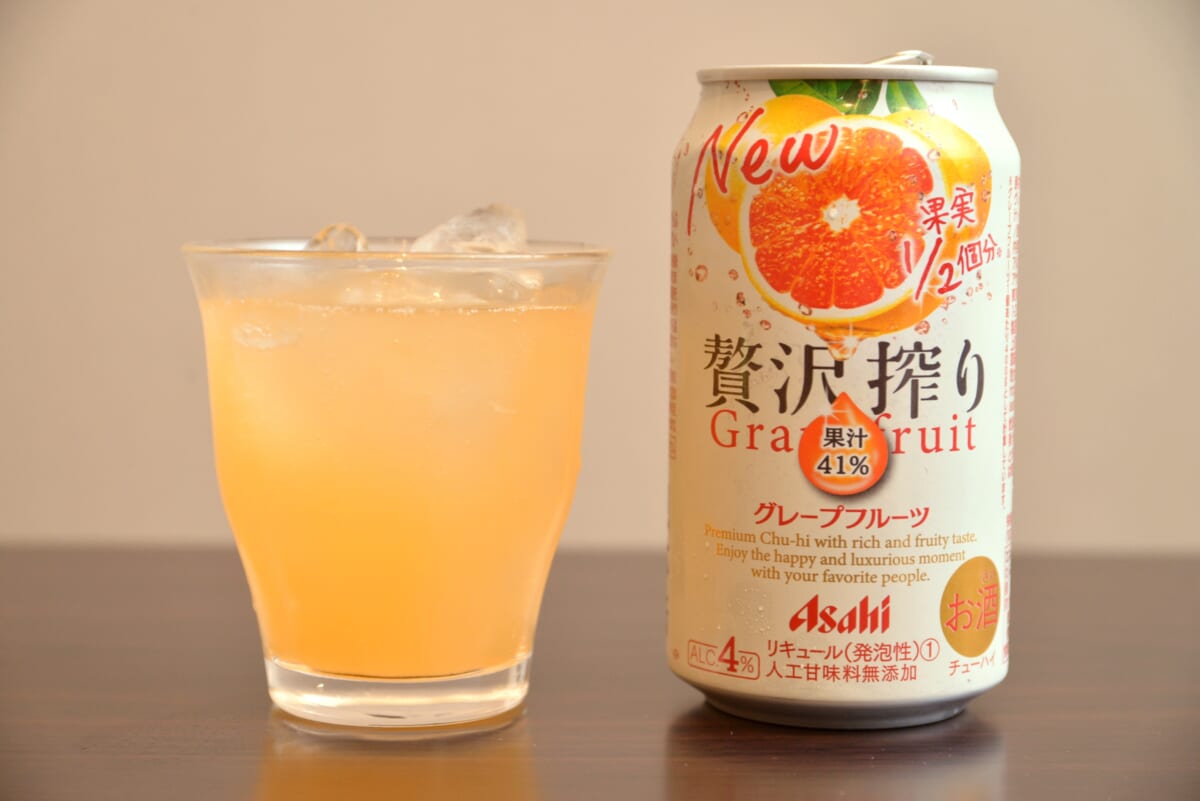 2018年に発売された「アサヒ贅沢搾り」は、“果実感”にこだわった缶チューハイブランド。果実1個分もしくは1/2個分の果汁を使用した、贅沢な味わいが特徴です。他のメーカーからも果実系チューハイはリリースされていますが、そのなかでも果汁の割合が特に多い印象です。