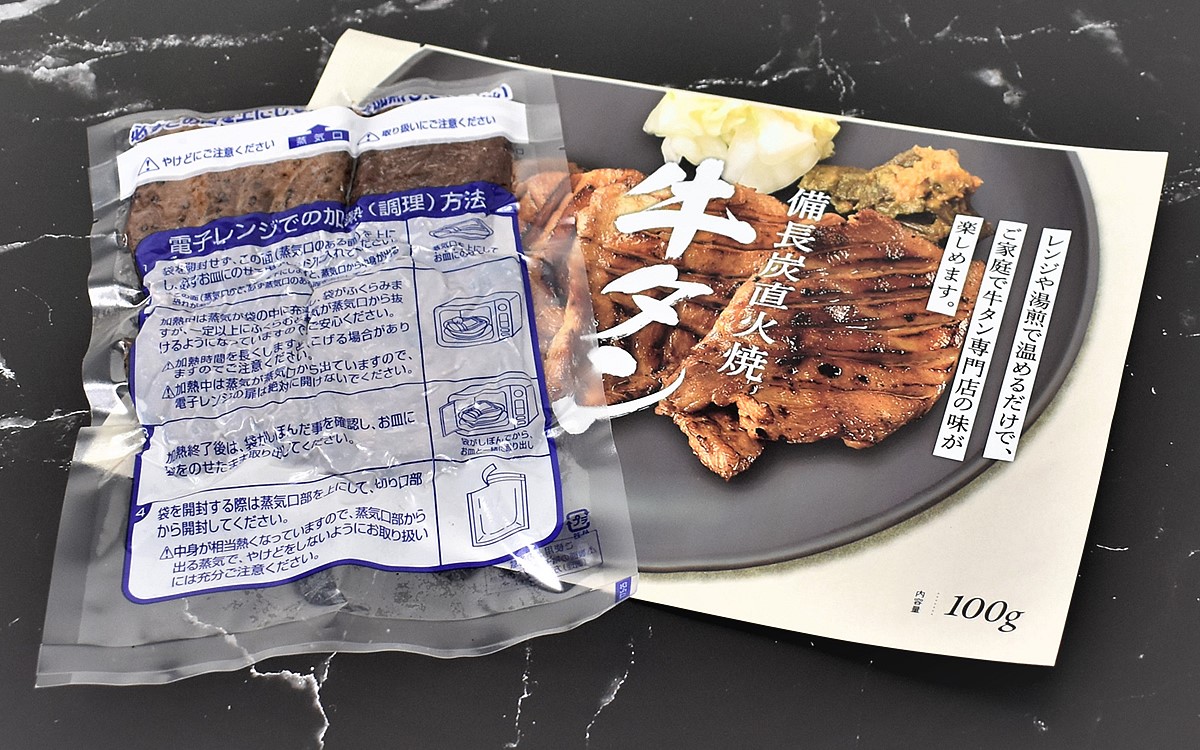 レンチンしてみると、さっそく旨味溢れる牛たんの香りが。じつは瞬間冷凍によって“炭の香り”が閉じこめられており、あたためることで一層、香ばしさが際立ちます。炭火で焼かれているため、やや焦げ目がついているビジュアルが魅力的。お肉の表面が脂でツヤツヤと輝いているのもたまりません…。