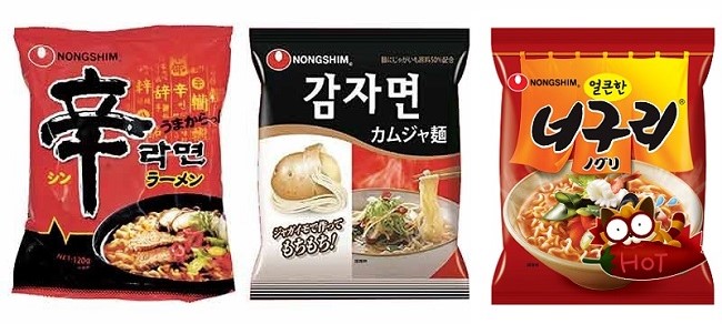 「辛ラーメン袋」「カムジャ麺」「ノグリラーメン」(108円/税込)