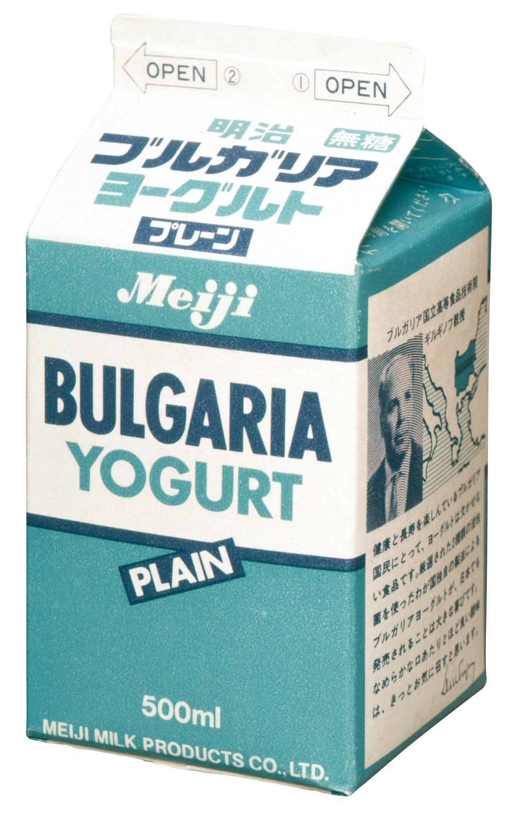 --ただ、1971年当初は「明治プレーンヨーグルト」という商品名で「ブルガリア」という冠がありませんでした。また、パッケージも現在のオープンタイプではなく、牛乳パックのようなパッケージだったようです。
