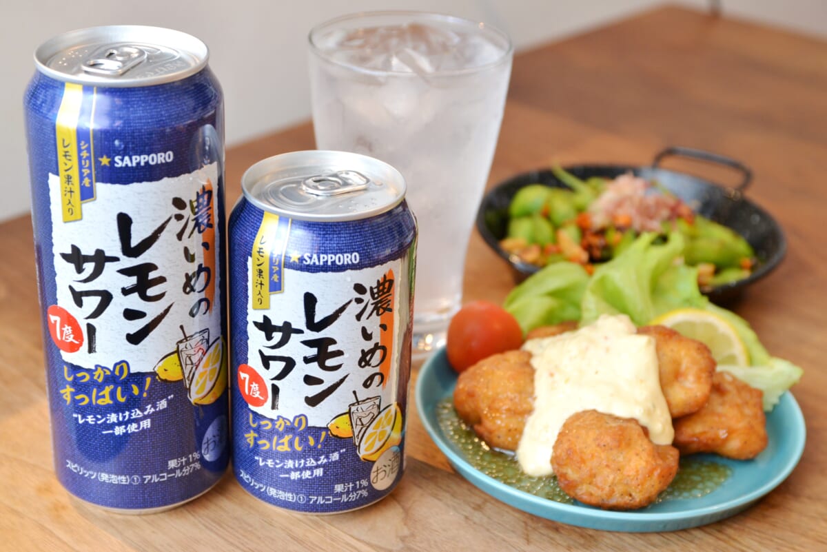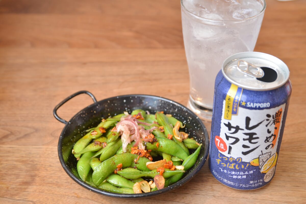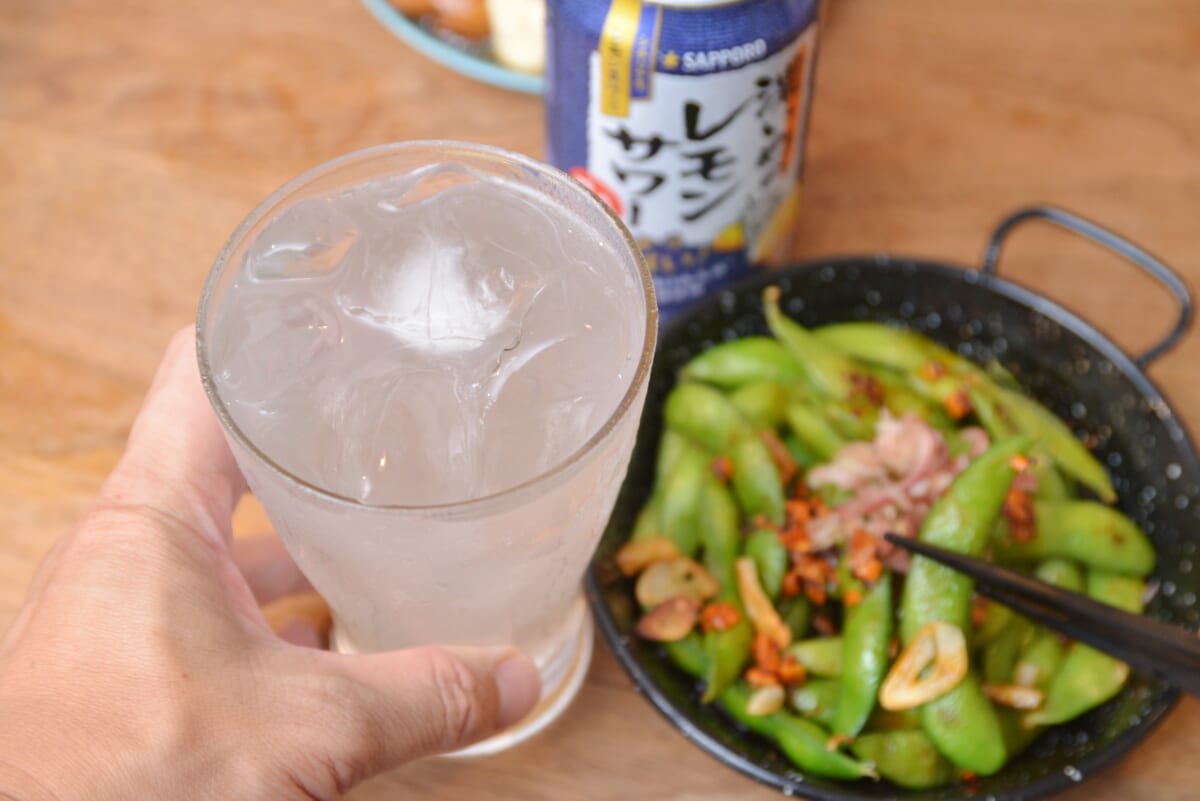 夏バテにも効きそうな、こってり系のおつまみ。「サッポロ 濃いめのレモンサワー」を合わせてみると、ジューシーなレモンの果実味と鮮烈な酸味が、料理の濃い味と油をしっかり受け止めます。そして7%の強めのアルコールと、炭酸と余韻の爽快感ですっきりリセット。また次のひと口を美味しくさせてくれます。