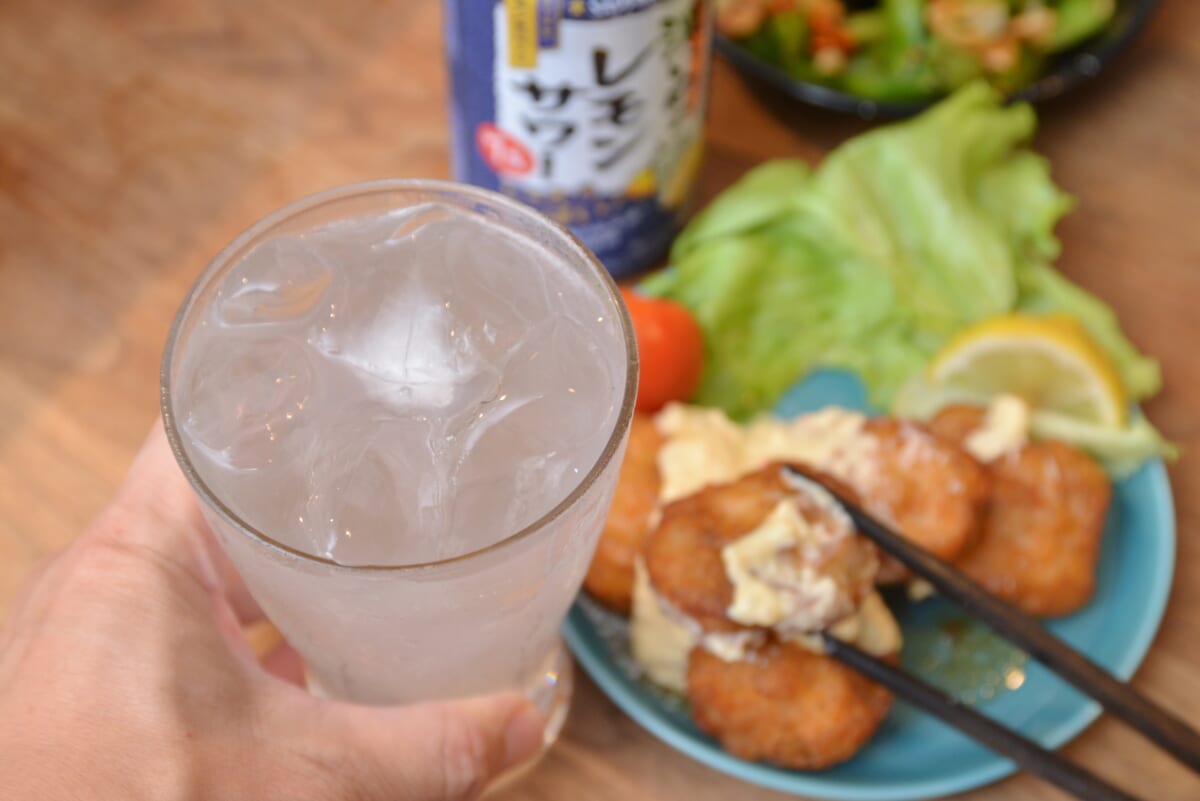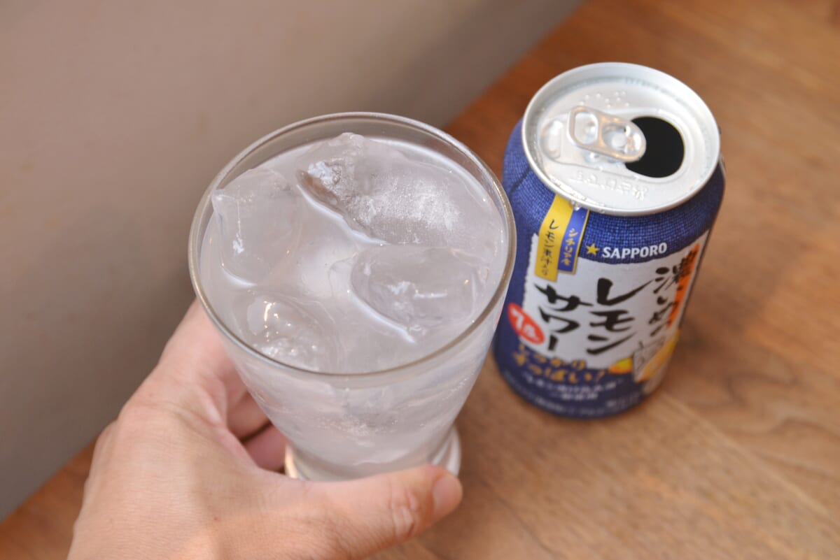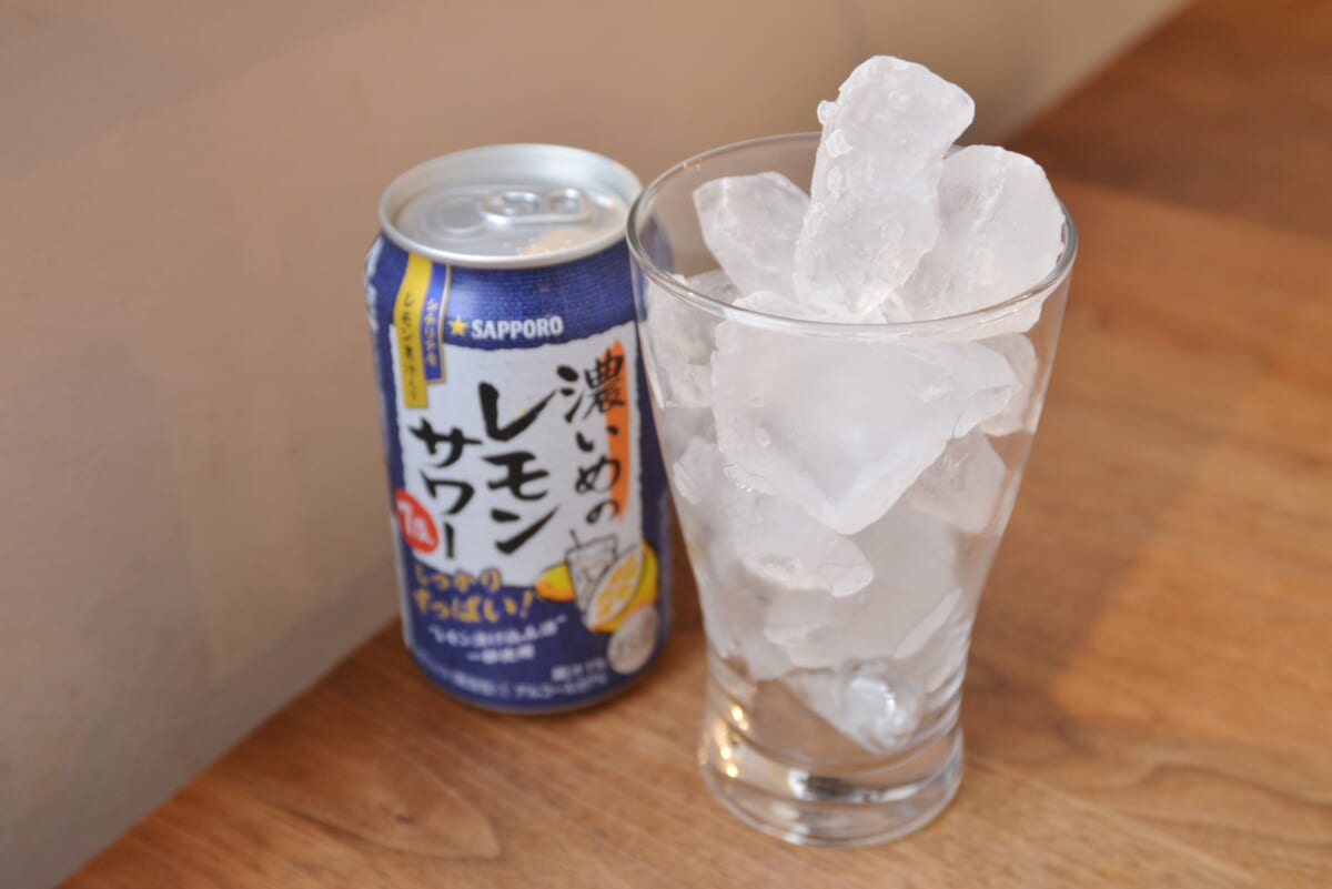 また、「飲もうと思っていたけどうっかり冷やし忘れた」というシーンでも重宝します。箱買いしたけど冷蔵庫に入れ忘れた、配達サービスに頼んだら常温で届いた、アウトドアやBBQに持っていったら冷えが弱かった、などなど。こういった状況から、急いで氷を大量に使って冷やした場合でも、薄まらずに美味しく飲めるのが「サッポロ 濃いめのレモンサワー」。