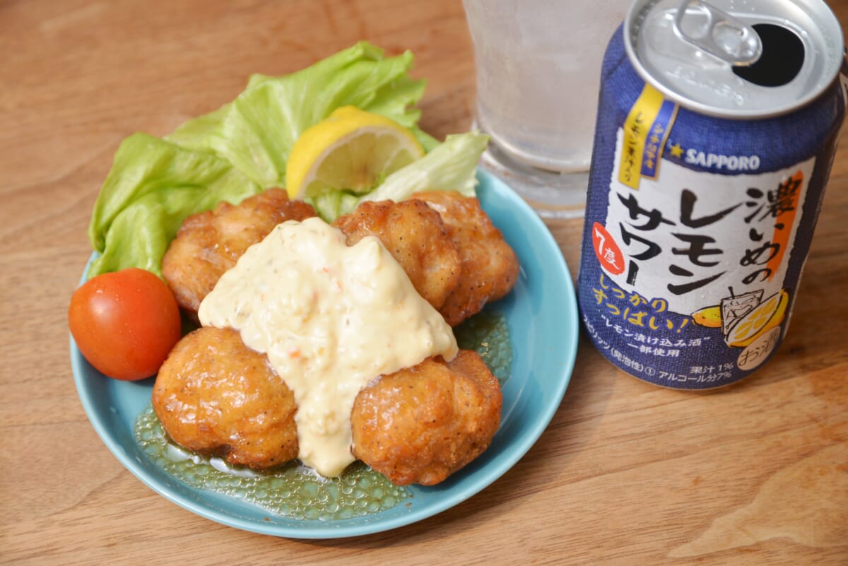 ペアリングのオススメとしては、特に濃厚な料理によく合います。なぜなら、ガツンとした味に負けない爽快感や酸っぱさを「サッポロ 濃いめのレモンサワー」がもっているから。そこで、公式サイトで紹介されている2品を参考に作って合わせてみました。