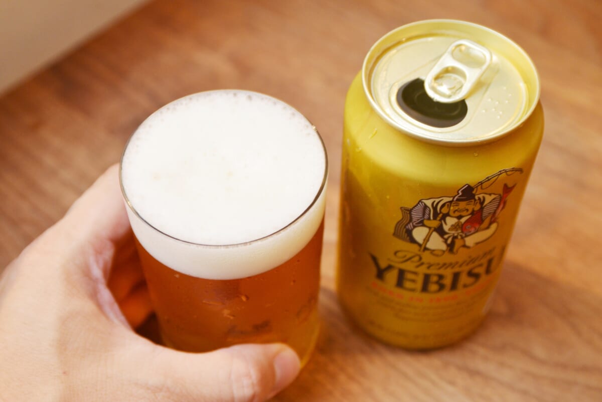 次は「ヱビス」をゴクッと。さすがのボリューミーな旨みと上品な苦み、そして優雅な香りが口いっぱいに広がります。この、わかりやすいリッチなテイストはまさに「ヱビス」ならではのキャラクターといえるでしょう。
