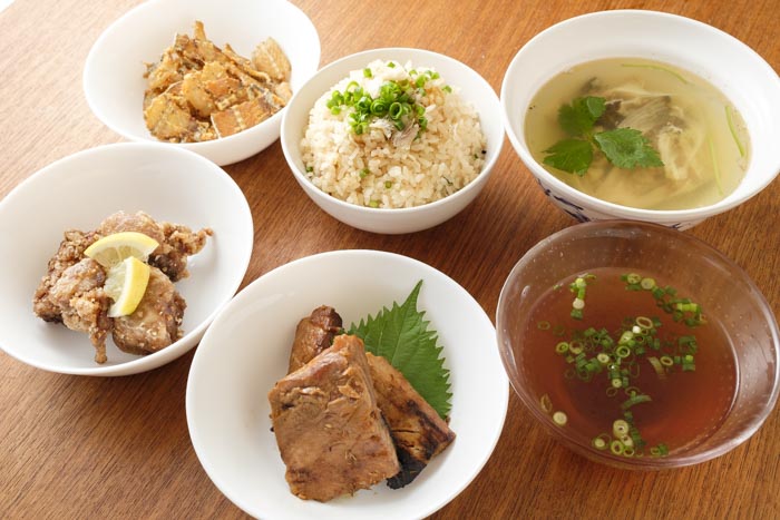 カメラマン・我妻慶一(以下、我妻) 本当に臭みがないのが不思議でした。個人的には、おかずが全部美味しかったですね。どれもアラや血合いと言われなければ気づかないほどで、メインのおかずにしても申し分ないと思いました。特に「マグロの血合いの竜田揚げ」は、子どもも好きそうな味。結構やみつきになりますね。「太刀魚の骨せんべい」なんかもお酒のおつまみに良いし、止まらなくなりますね(笑)。