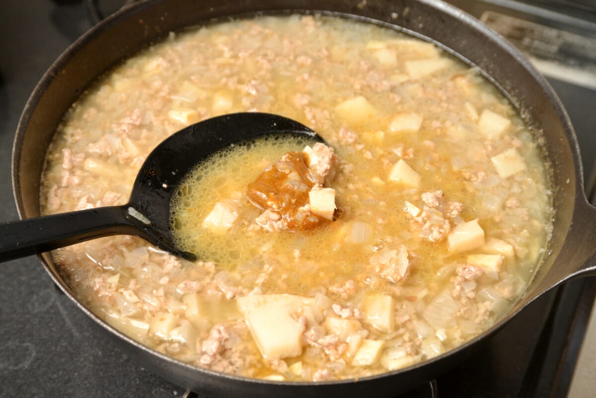 味のベースとなる「こくまろカレー」は超が付くほどおなじみのブランドですが、大きな特徴は商品名そのものと言っていいでしょう。「あめ色玉ねぎのコクのルウ」と「生クリームのまろやかルウ」、2つのルウをブレンドしており、甘みやうまみ、スパイス感が口いっぱいに広がる、コク深いカレーが簡単に作れます。