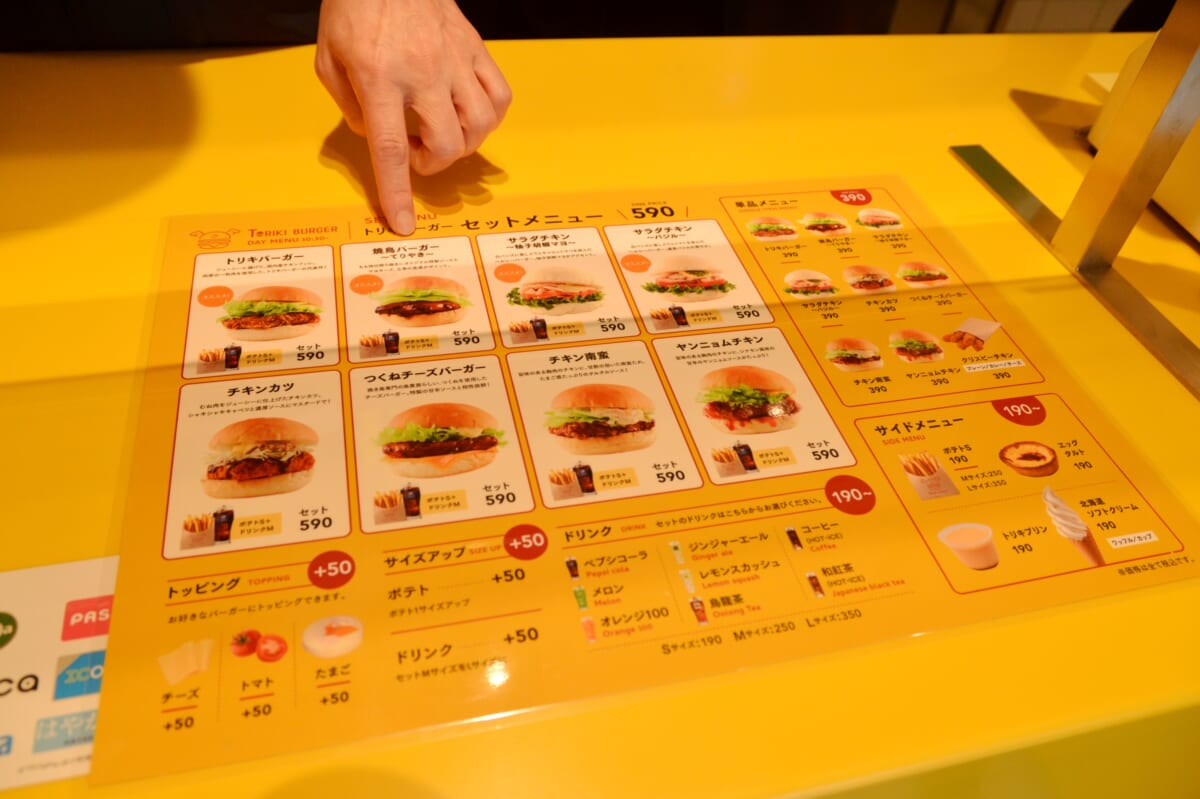 筆者がオーダーしたのは、代表メニューの「トリキバーガー」と「焼鳥バーガー~てりやき~」。なおメニューの価格には、「鳥貴族」イズムを感じました。というのも、価格設定が均一でわかりやすいのです。