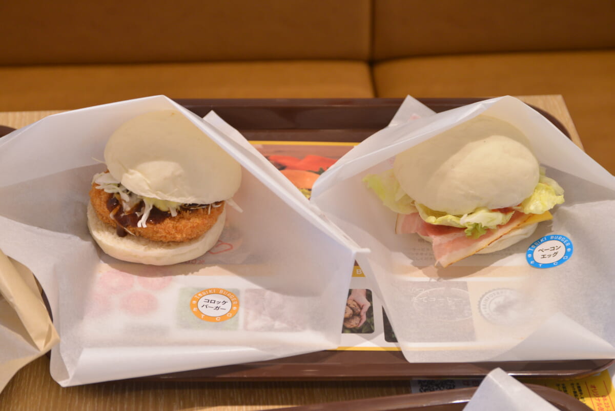 デイメニューは全8種類のバーガーがあり、7時から10時半までのモーニングは6種の朝食メニューに。なおモーニングは一部に米粉を使って蒸し上げた白バンズとなり、ふんわりもっちり食感の低糖質な生地を楽しめます。