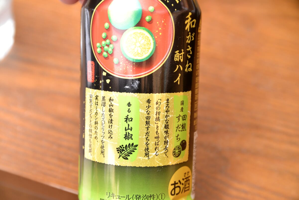 「アサヒ 和がさね酎ハイ国産田熊すだち和山椒」は、辛さは前述「アサヒ 和がさね酎ハイ国産ゆず生姜」よりおとなしめ。その一方香りは鮮烈で、こちらもはっきりとした個性の強さを感じます。和山椒の滋味深く青々としたフレーバーに、芯のあるすだちの柑橘感。甘さはより控えめな印象で、余韻はすっきりとしたクリアな味わいです。