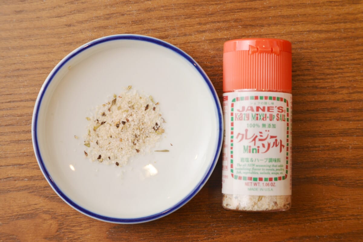 第一印象は、ハーバルで上品な風味。肉にも合いますが、今回比べたほかのスパイスソルトよりはおとなしめで、一方で魚との相性に関しては優位性を感じました。粒が細かいパウダー状になっているのもポイントで、下味として馴染ませたいときにも使いやすいと思います。