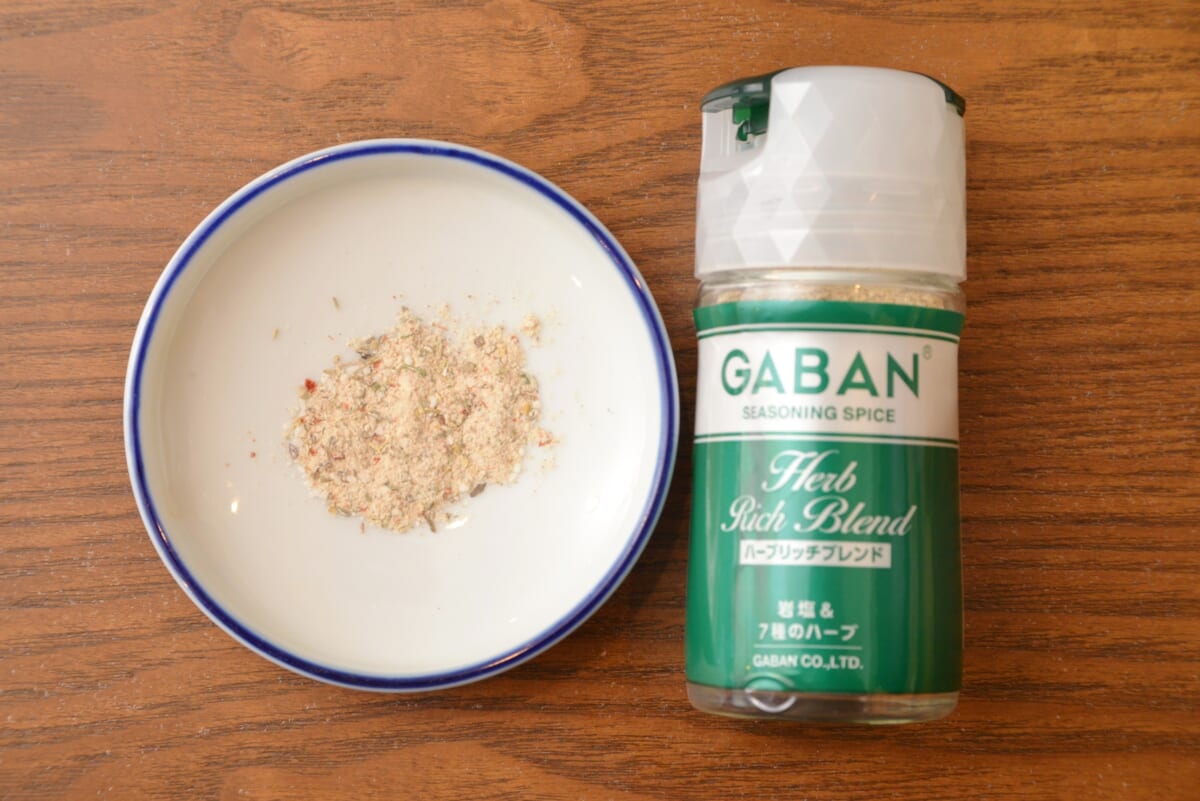 ラストは日本が誇るスパイスの超名門「GABAN」(ギャバン)。シーズニングやスパイスソルトのバリエーションも豊富で、その中から今年の新商品である「GABAN ハーブリッチブレンド」を試します。