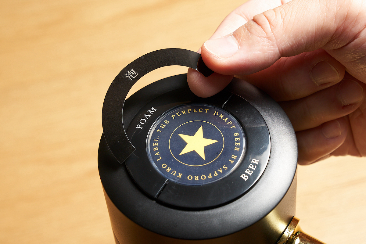 サッポロ生ビール黒ラベル「オリジナルビヤサーバー」は至れり尽くせりといえるほど、さまざまなユーザー視点で考えられたプロダクトになっている。例えば「ビールボタン」には「BEER」、「泡ボタン」には「FOAM」と記載されているが、それぞれに「ビール」「泡」と書かれたシールが別添で用意されていて、これらを貼れば英語が苦手な人でも使いやすい。