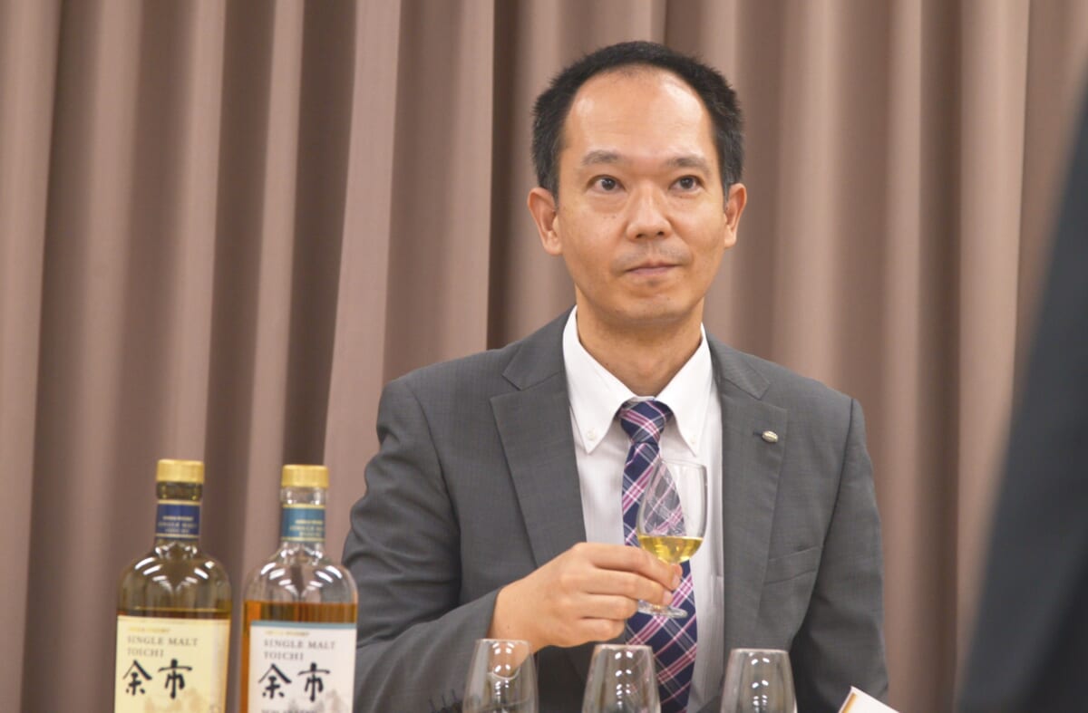 次は尾崎チーフブレンダーに「シングルモルト宮城峡 ピーテッド」の特徴を聞きました。採用したのは、あえてピーテッドモルト原酒のみ。そのうえで宮城峡らしさは生かしつつ、ピートが香るたくましい味わいに仕上げたそうです。