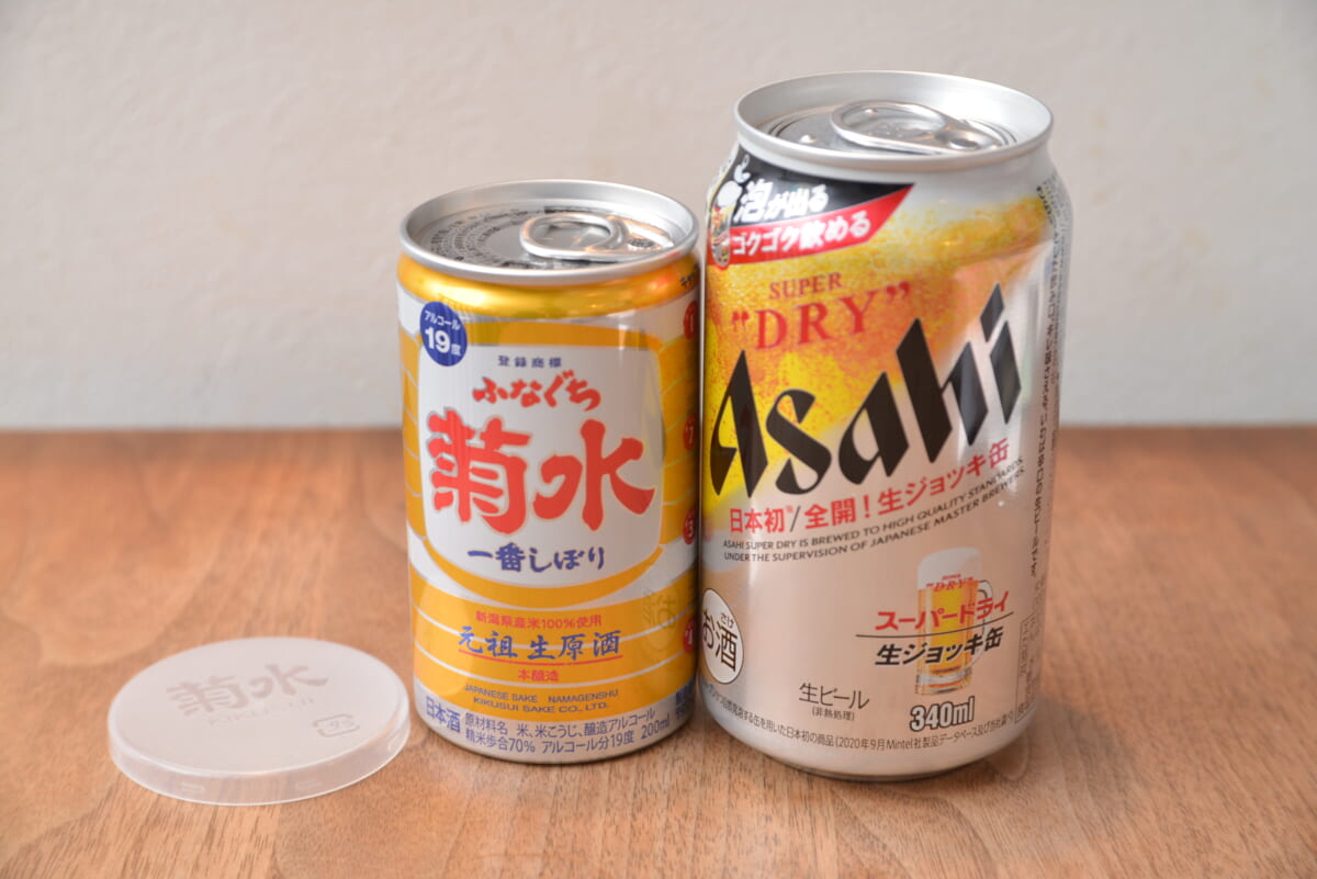 2021年に大ヒットしたビールが「アサヒスーパードライ 生ジョッキ缶」です。特徴のひとつが、缶の全面が開くフルオープンタイプであること。ビールの缶としては最新技術が用いられていますが、日本初の缶入り生原酒として有名な「ふなぐち菊水一番しぼり」は半世紀前からフルオープン缶を採用しており、このタイプの缶酒が生ジョッキ缶の影響で今後増えるのでは?と期待しています。
