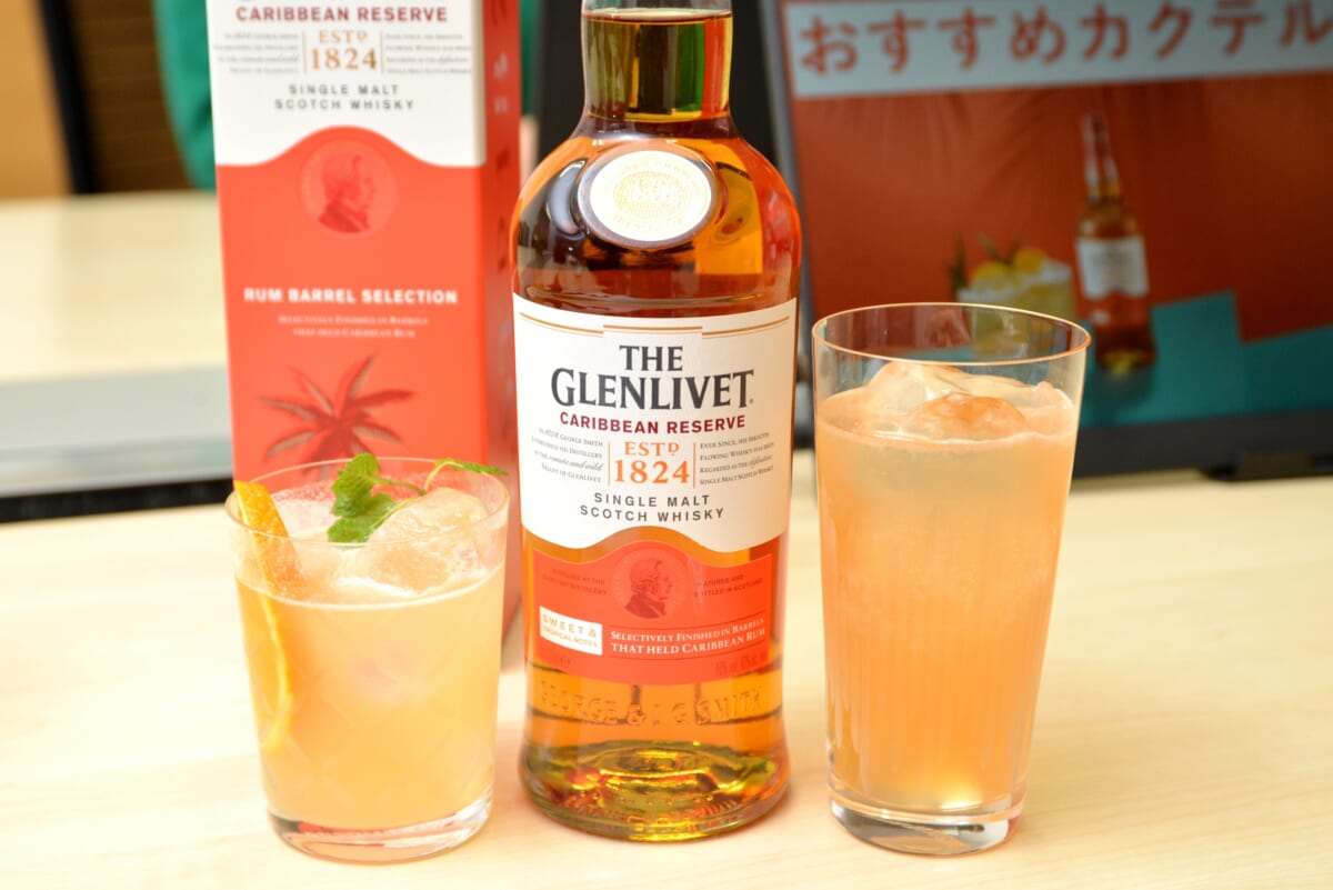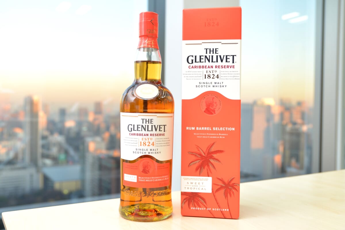 今回の「ザ・グレンリベット カリビアンリザーブ」は、海外では2021年夏に先行発売されていたモデルが日本上陸したもの。以前から発売されていた「ザ・グレンリベット 14年 コニャックカスク・セレクション」(参考小売価格税込6930円)に続く、熟成樽の違いで独自の個性をもたせた一本です。
