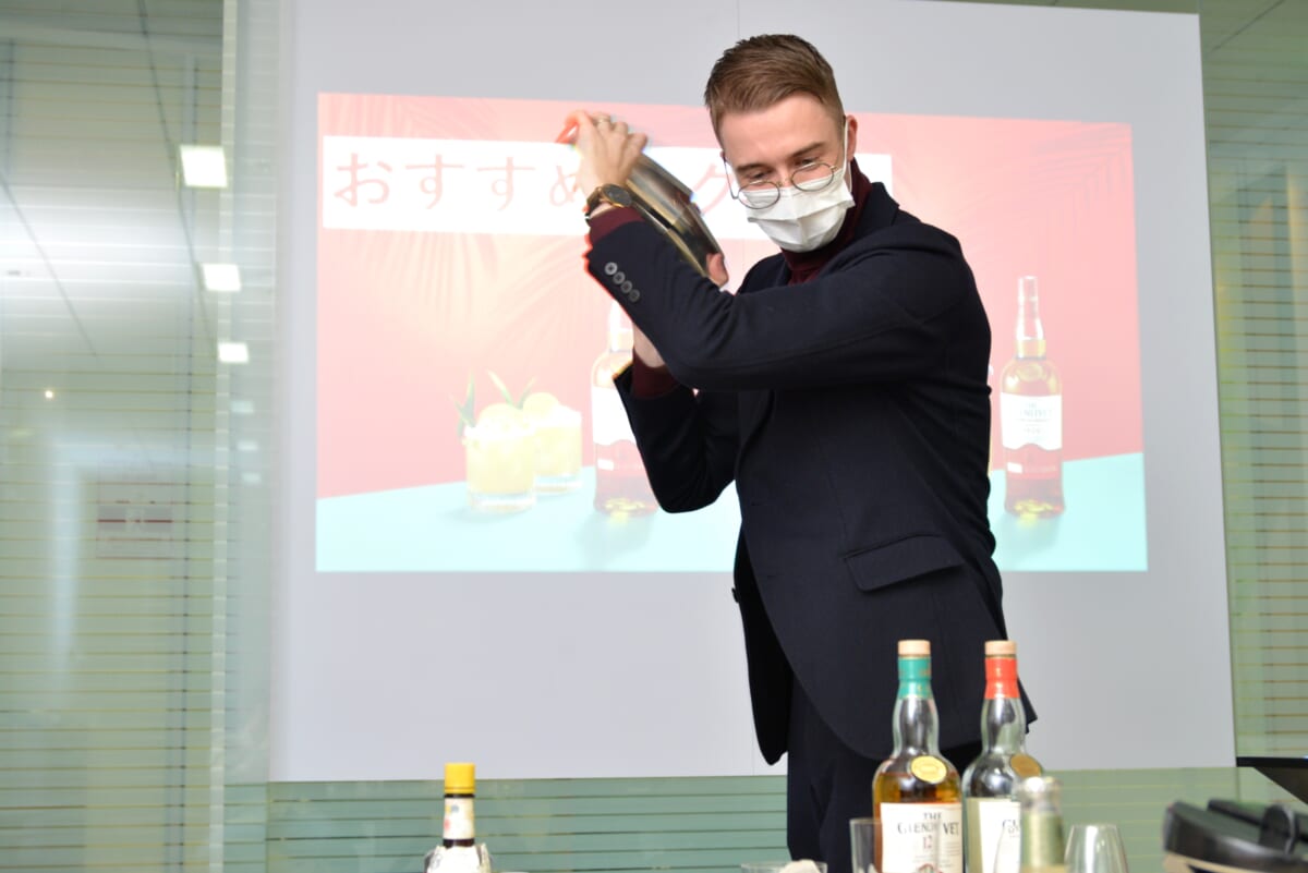 訪れたのは世界的なワイン&スピリッツメーカーであり、「ザ・グレンリベット」などの輸入販売も手掛けるペルノ・リカール・ジャパン。「ザ・グレンリベット」のブランドオーナーであるシーバス・ブラザーズ社のスコッチウイスキーアンバサダー、サイモン・ダーヴェニーザさんが教えてくれました。