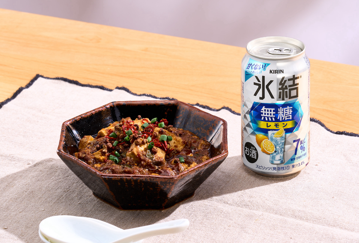 麻婆豆腐のトロッとしたテクスチャーに、スカッとした「氷結(R)無糖 レモン」のシャープな爽快感がたまりません。ピリッとした辛さやシビれは、レモンのすがすがしい酸味が寄り添いながらフィット。カレーやキムチ鍋、タコスといった辛い料理全般に合うと思います。