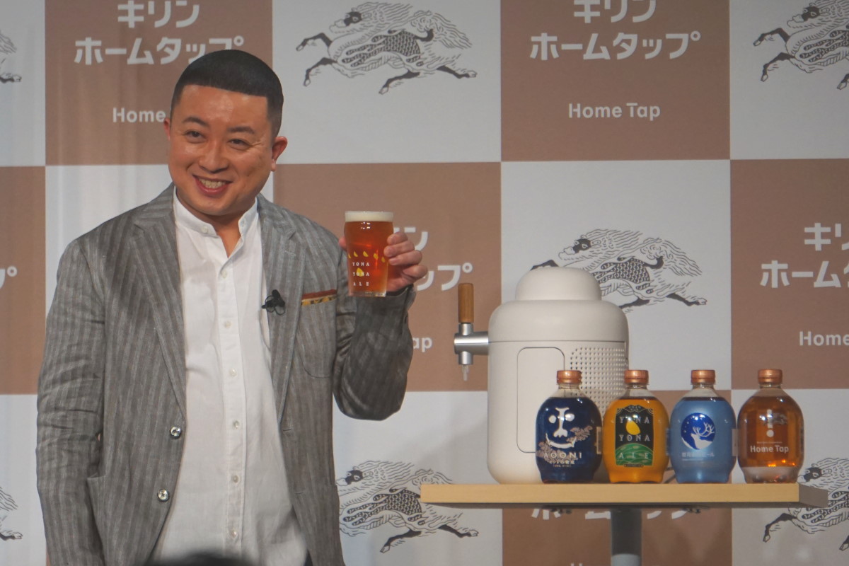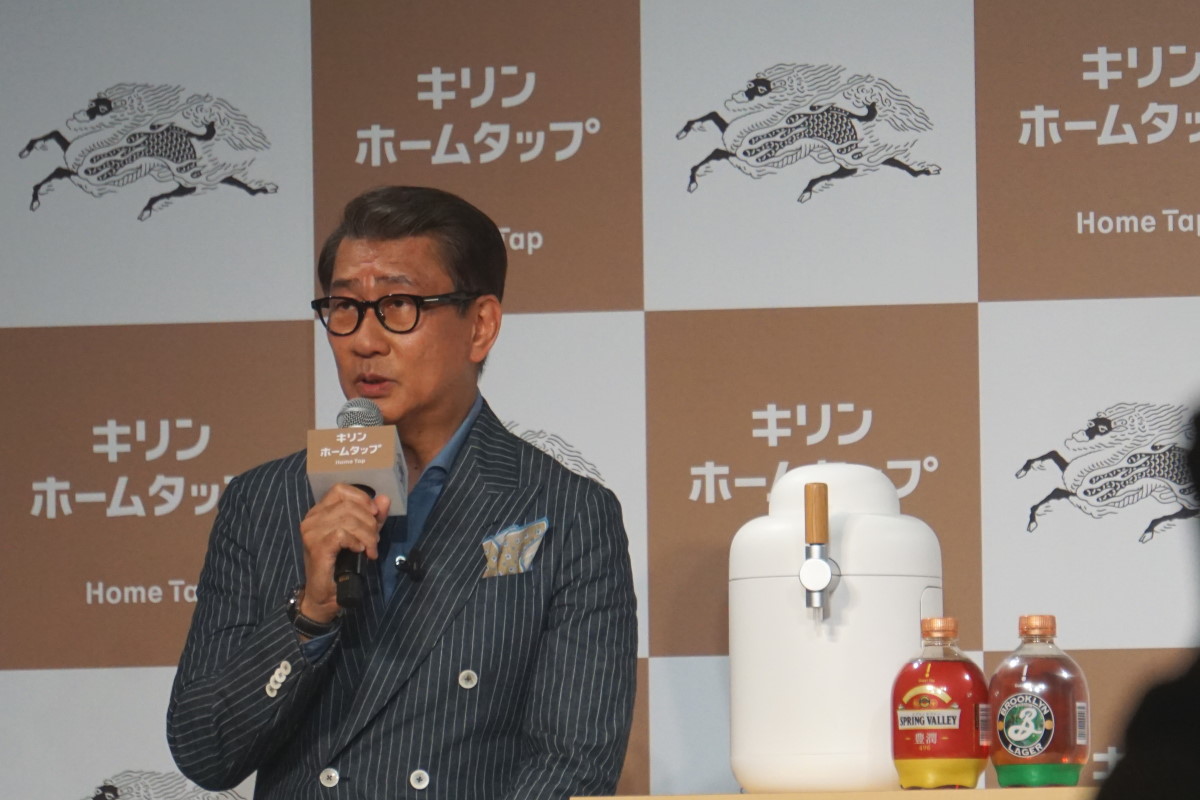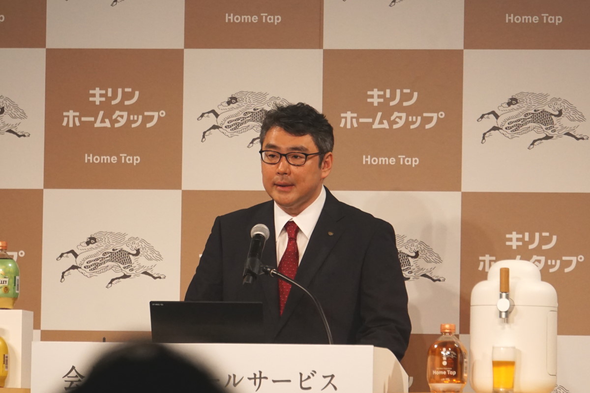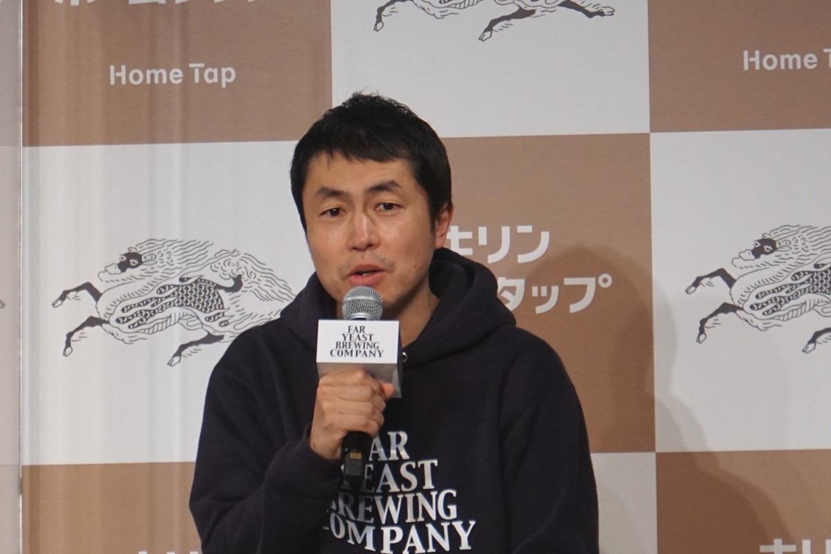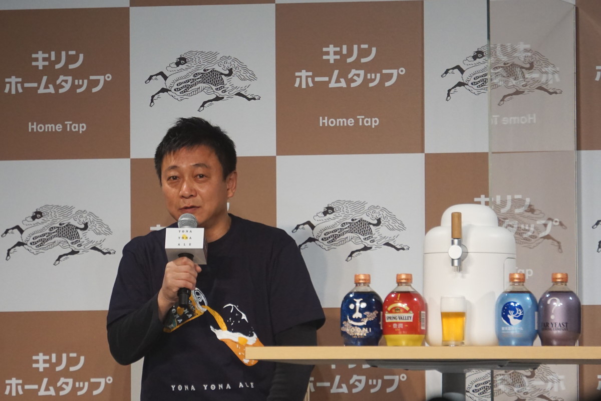 ↑新たにホームタップにビールを提供することになったファーイーストブルーイングの山田司朗代表取締役。「ホームタップは家庭で気軽に本格的なビールが楽しめる画期的なサービス。ぜひ自社のビールを飲んでほしい」とアピールしました