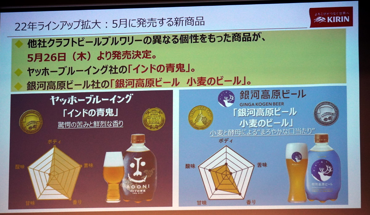 キリンビールは、会員制生ビールサービス「キリン ホームタップ」のラインナップ拡充第2弾として、Far Yeast Brewing(ファーイーストブルーイング)が新たに参画すること、また第1弾で参画したヤッホーブルーイングから「インドの青鬼」「銀河高原ビール 小麦のビール」の2種を5月26日より発売することを発表しました。