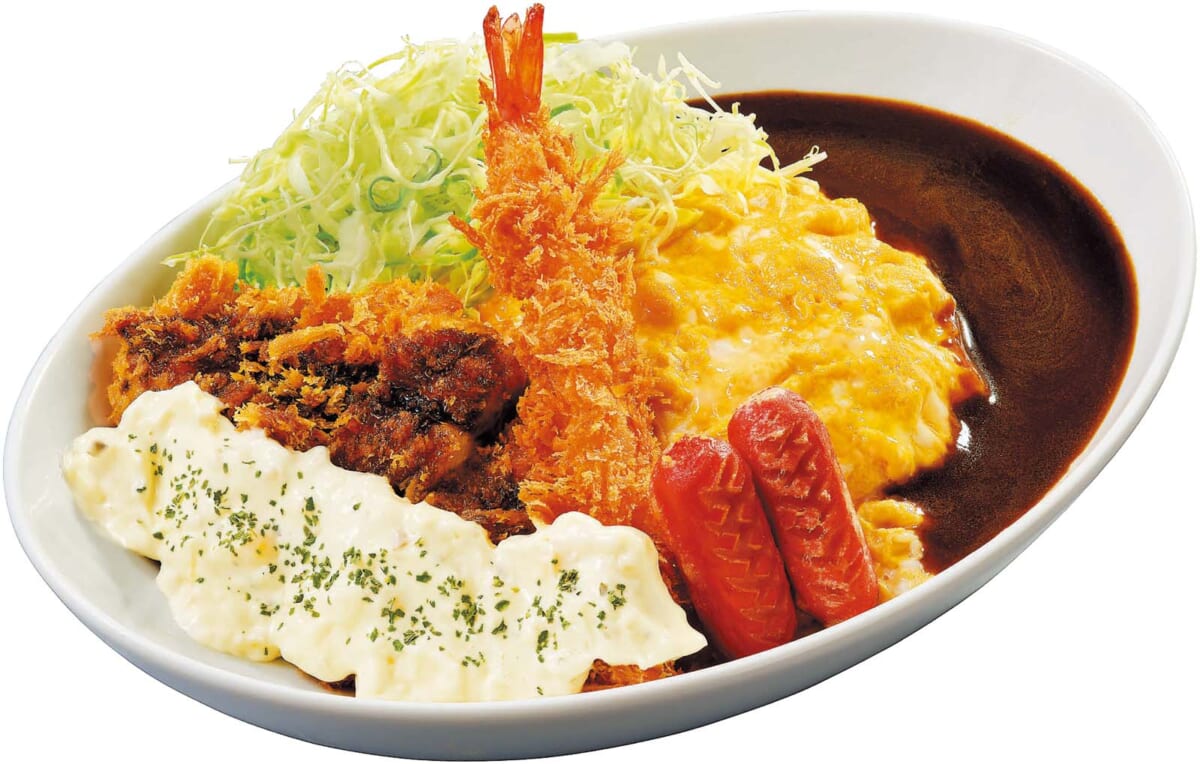 とろとろのオムカレーに海老フライ、タルタルチキンカツ、ウインナーを盛り付けた大人様ランチ。お子様ランチを食べたい大人の夢が詰まったワンプレートだ。5月の限定メニューだったが、復活を待望する声は多い。