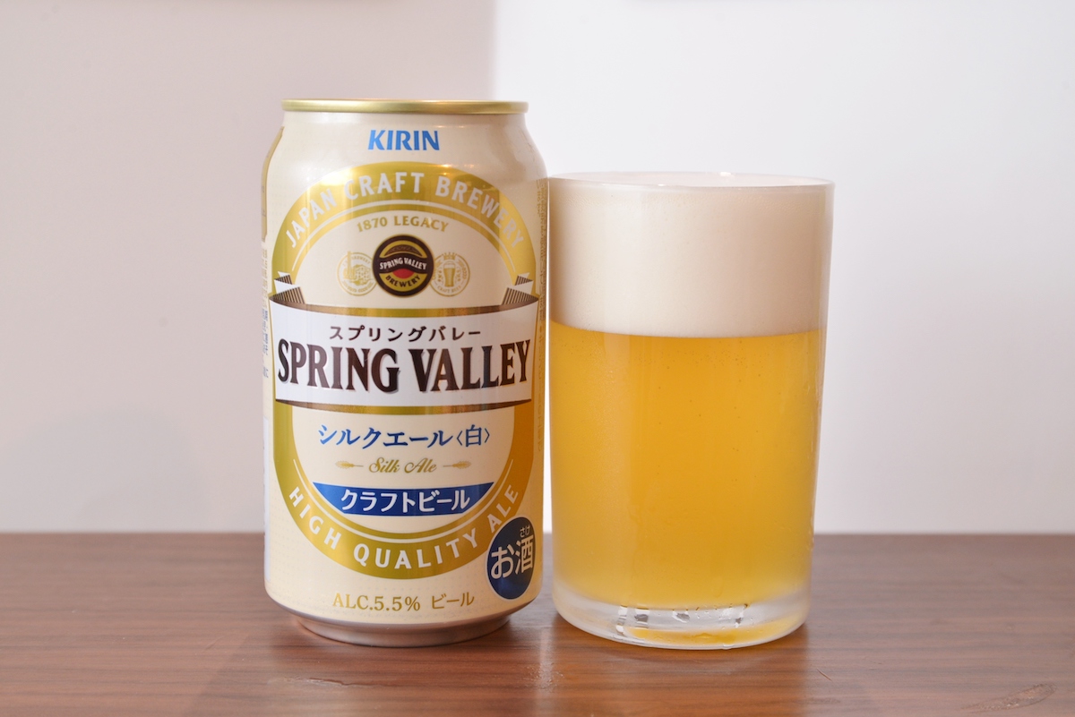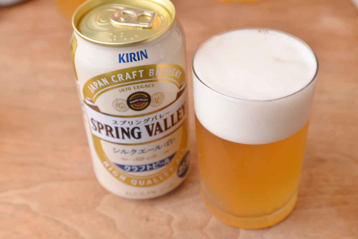 一つ目は、もっとも旬な「スプリングバレー シルクエール<白>」。クラフトビールの市場拡大をけん引する「スプリングバレー 豊潤<496>」に続く同シリーズの第2弾で、9月13日から全国で発売されています。