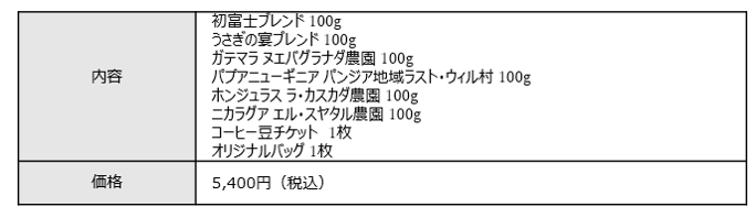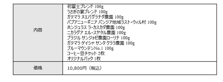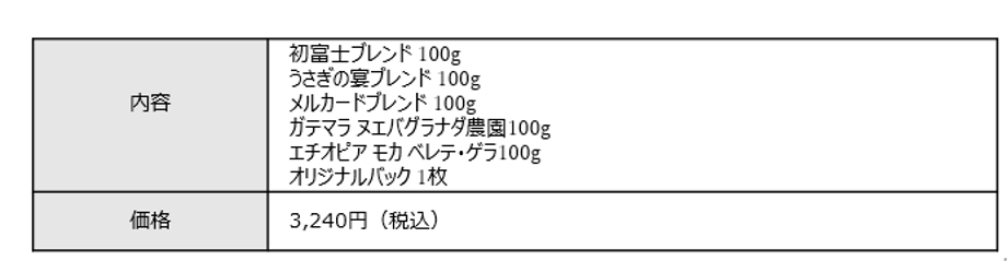 福袋限定の「うさぎの宴ブレンド」「初富士ブレンド」をはじめ、UCCカフェメルカードの人気ブレンドコーヒーや、「ブルーマウンテンNo.1」「ガテマラ ゲイシャ サンタ クララ農園」など、様々なスペシャルティコーヒーが入ったセットを価格帯別に3種類用意しています。