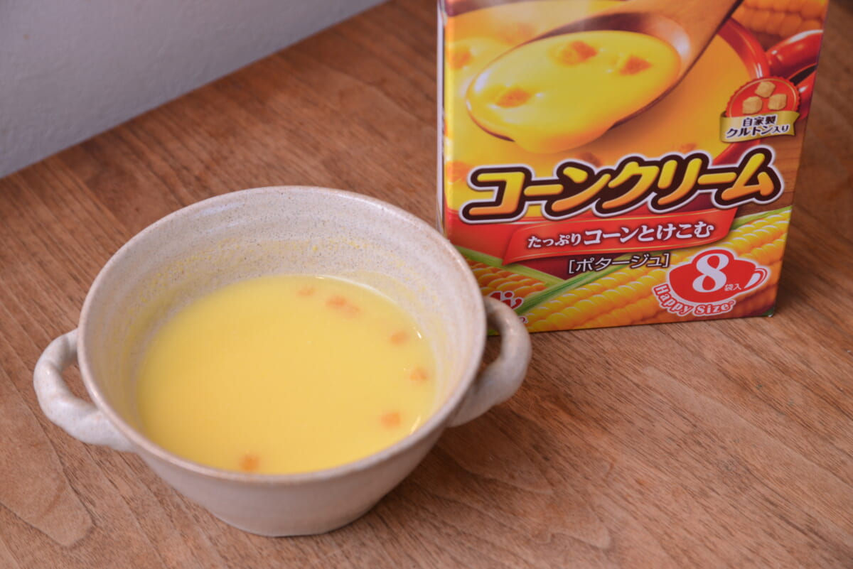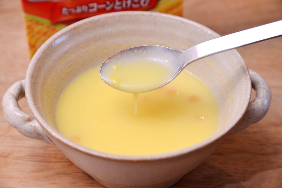 続いて、大ロングセラーの「クノール カップスープ」コーンクリームもひと口。うんうんなるほど! 甘みや濃厚感は「クノール 贅沢野菜」に軍配が上がるものの、コーンのうまみを存分に感じられる飽きのこない安定のおいしさで、「毎日飲むならこっちのほうがイイ」という人もいるでしょう。