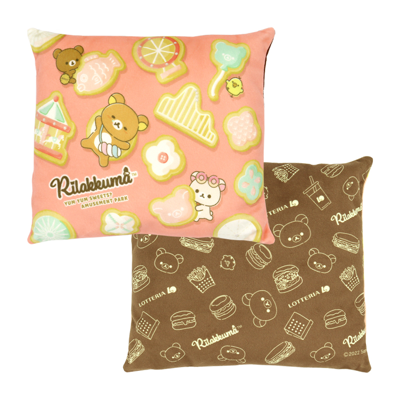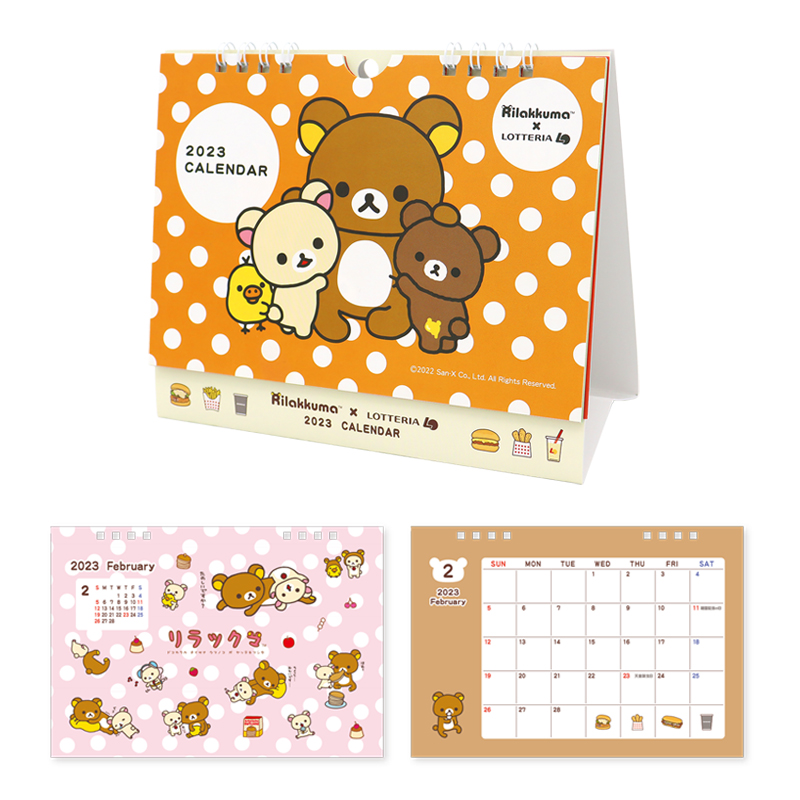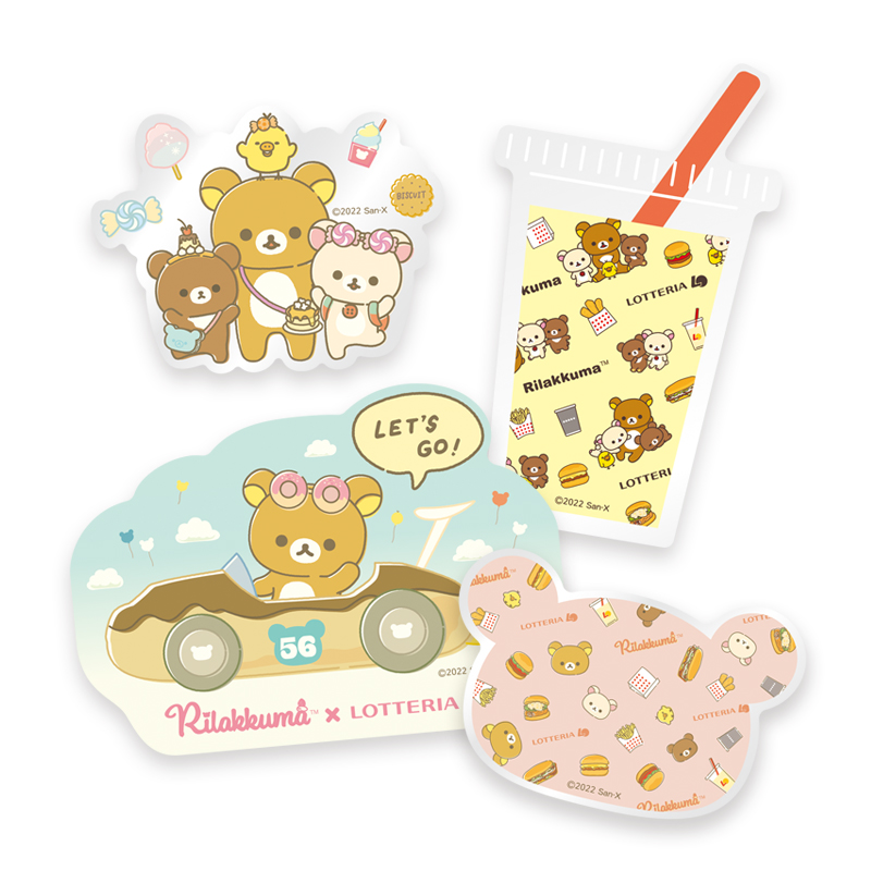 今回発売となる福袋は、“お菓子でできた不思議な遊園地を夢見るリラックマ”をテーマに、7月にリリースされた最新アート「おかしな遊園地」のモチーフと、ロッテリアのハンバーガーやポテトなどのイラストデザインを採用したA4サイズが入る「トートバッグ」をはじめ、「ミニクッション」や、クリア素材を使用した透け感が特徴の「クリアステッカー」、様々なリラックマのデザインが描かれた「卓上カレンダー」の4アイテムを用意。