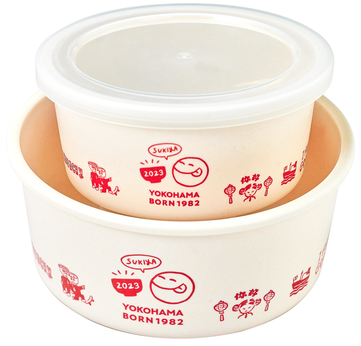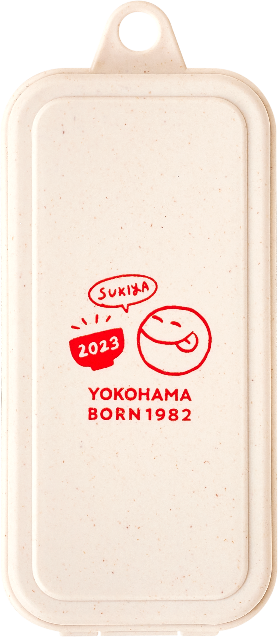 SMILE BOX 2023は、「すき家オリジナル風呂敷」「フードコンテナ」「カトラリーセット」「すき家オリジナル付箋」「2,000円分のクーポン」が入った福袋。フードコンテナとカトラリーセットは、竹繊維をパウダー状にして固めた、土に埋めると微生物が生分解し、数年で土に還る自然由来の素材「バンブーファイバー」を使用しています。