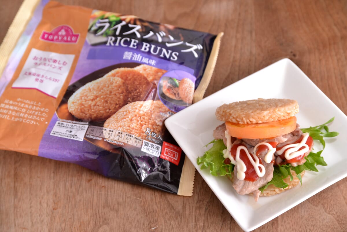 ライスバーガーの例としては、近年マクドナルドの「ごはんバーガー」が限定発売を積極展開。福岡発の専門店「コメコメバーガー」は昨夏東京に進出しました。小売りでも、イオンは昨春に冷凍食品で「トップバリュ ライスバンズ」シリーズを新発売し、人気を博しています。