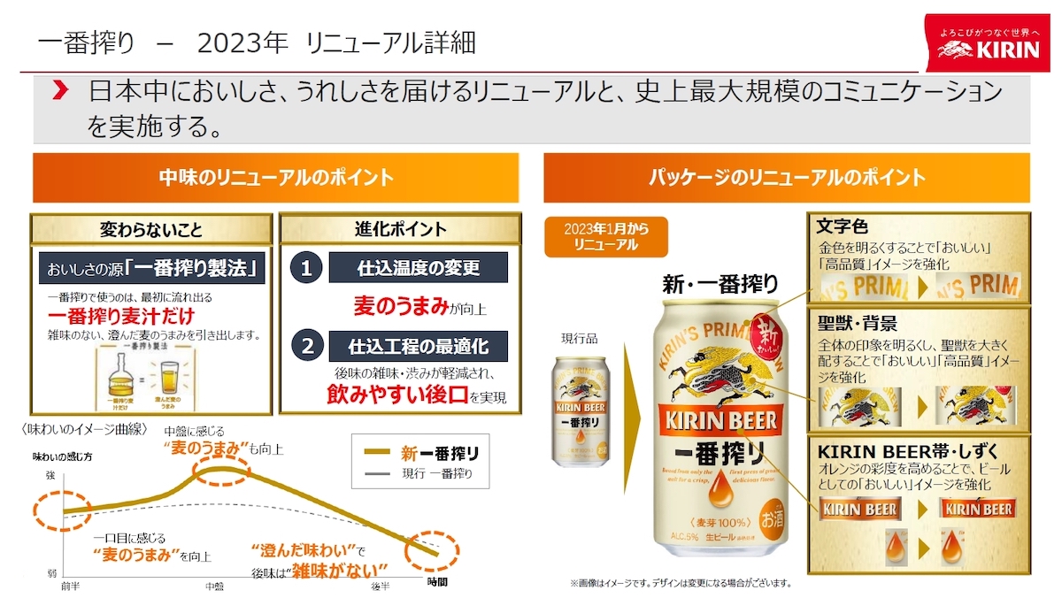 どのように注力していくのか、詳しくレポートしていきましょう。まずは同社のフラッグシップ銘柄「キリン一番搾り生ビール」から。