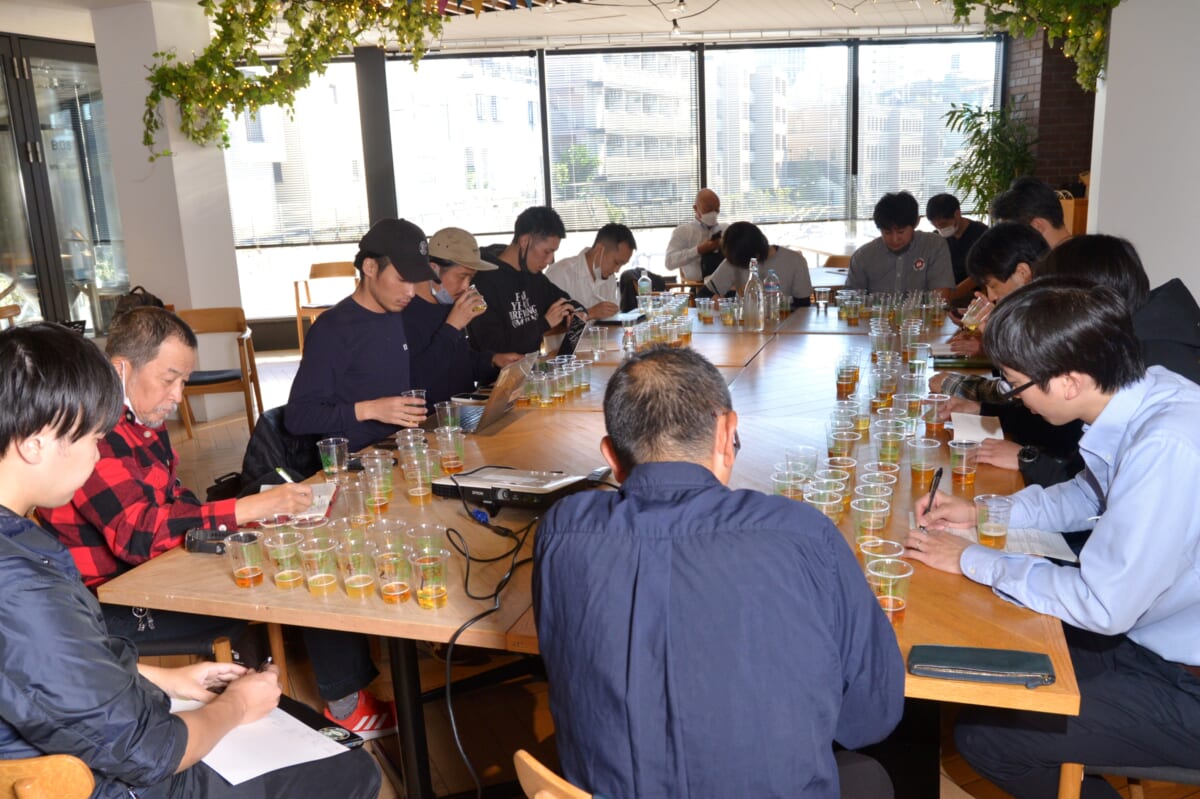目的は、一同でそれぞれのビールを飲み比べ、相互評価したり意見を交換したりするなかで改善ポイントなどを洗い出し、クラフトビール全体の品質向上につなげるのが狙いです。