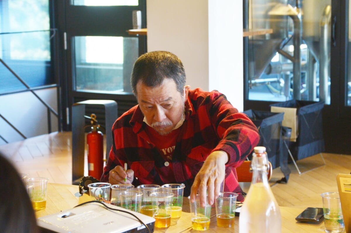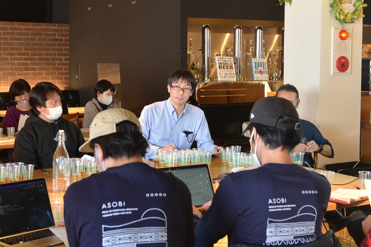 官能評価会には、日本ビアジャーナリスト協会の代表であり、京都の与謝野でホップ栽培にも取り組む藤原ヒロユキさんも参加。ホップ生産者としての立場から感想を聞きました。