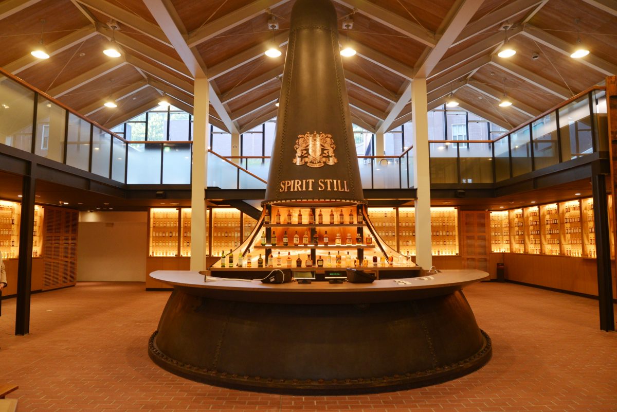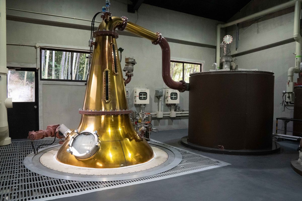 加えて、館内のテイスティングラウンジも改修されました。こちらはかつて同蒸溜所で稼働していたポットスチルを再利用したバーカウンター、原酒ボトルに向き合うスタンドテーブル、窓の外に広がる「杜」を眺めるローチェアなどを設置。いっそう贅沢な空間にリニューアルされました。