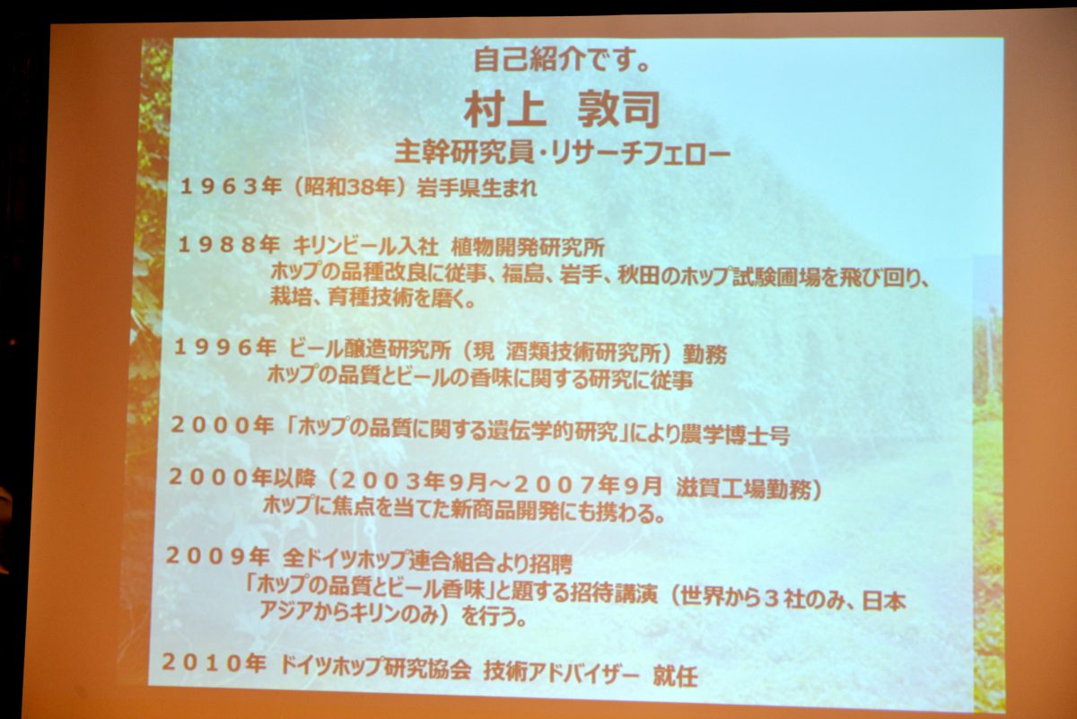 村上さんは、岩手県紫波郡紫波町出身。岩手大学農学部農学研究科修了後、1988年にキリンビールに入社し、1996年までは植物開発研究所(当時)でホップの品質改良に従事。その後、酒類技術研究所に異動し、ホップに焦点を当てた商品開発にも携わるようになります。