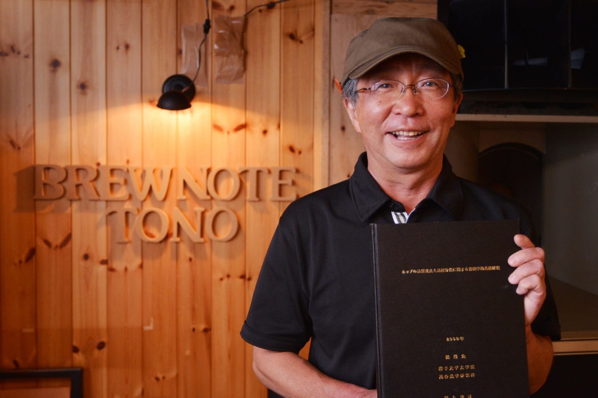 長年、この2種をはじめとするホップの研究に心血を注ぎ、日本を代表するホップ博士として有名な、同社OBの村上敦司(むらかみあつし)さんです。第一線は退いたものの、村上さんはいまもキリンホールディングス飲料未来研究所の技術アドバイザーとしてホップ業界に携わり、週末はジャズ喫茶「BrewNote遠野」のマスターとして充実した日々を過ごしています。
