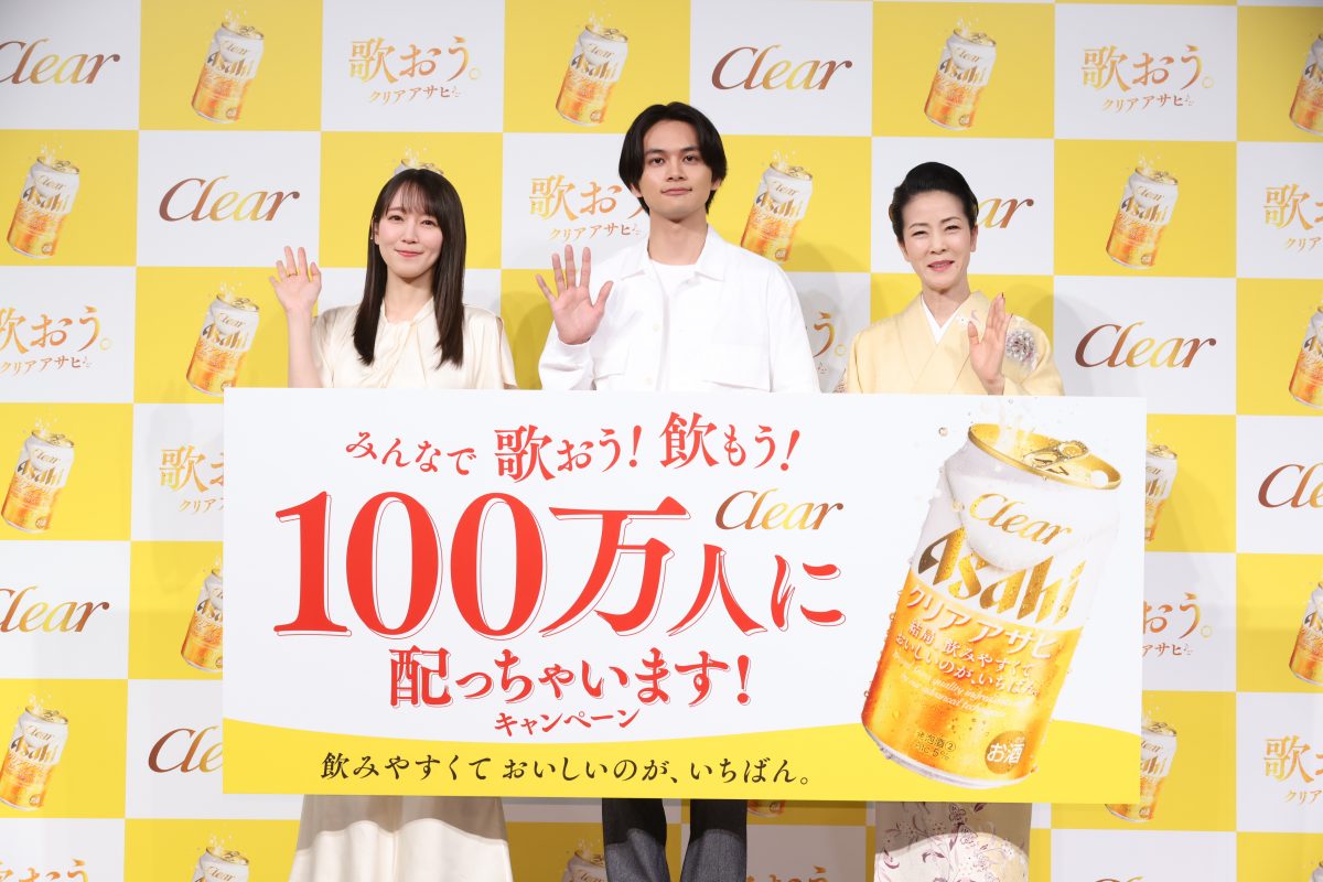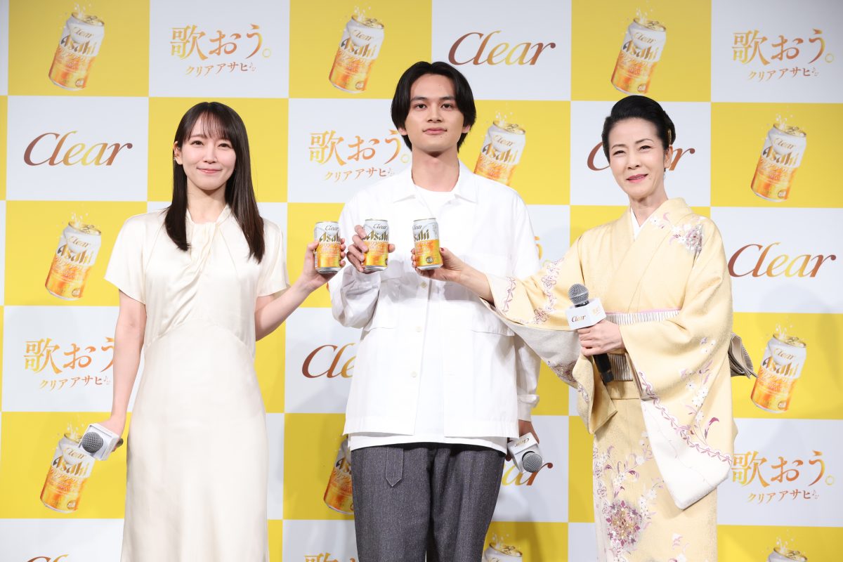 俳優・アーティストの北村匠海さん、吉岡⾥帆さん、演歌歌⼿の坂本冬美さんが、「クリアアサヒ」の新TVCMに出演。アサヒビールが3月18日(月)に開催した「クリアアサヒ 新コミュニケーション発表会」に登壇しました。
