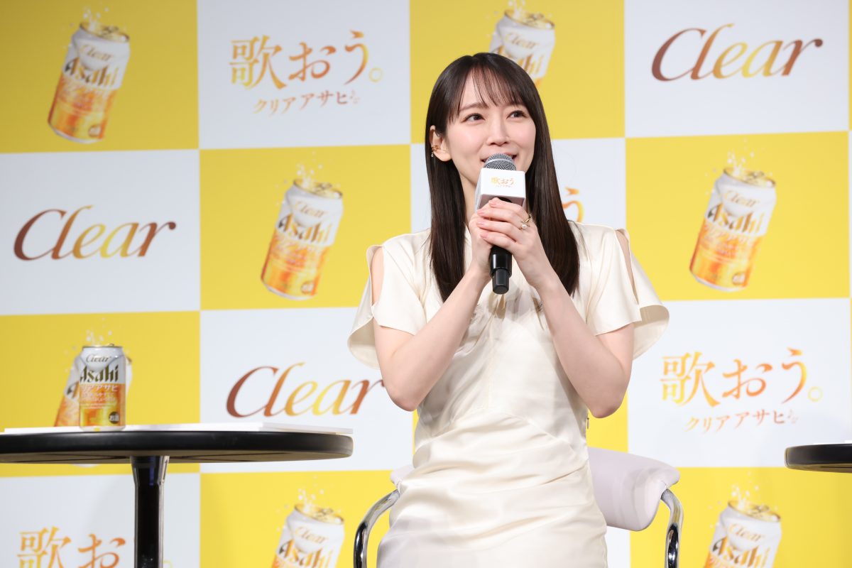 坂本さんも「真剣に歌っちゃうものですから、気がついたら眉間に皺が寄っていてNGが出ちゃいまして」と表情作りが難しかったことを伝えつつも「その分飲めたので」と笑顔。また吉岡さんも「ビールを飲んで撮影できるのが最高すぎて。全く飽きない! 本当にたくさんいただきました」と撮影でクリアアサヒを存分に楽しんだことを告白しました。