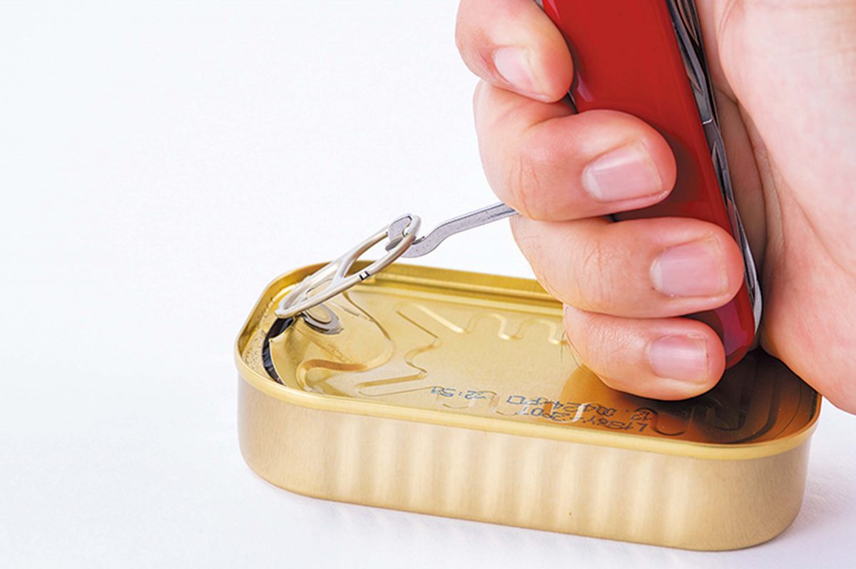 鋸やハサミも付いた15機能搭載のスイス製マルチツール。災害時には栓抜きや缶切りなど、ちょっとしたツールが必要になるケースが出てくるかもしれない。アイデア次第でそんな窮地をも切り拓いてくれる心強いアイテムだ。