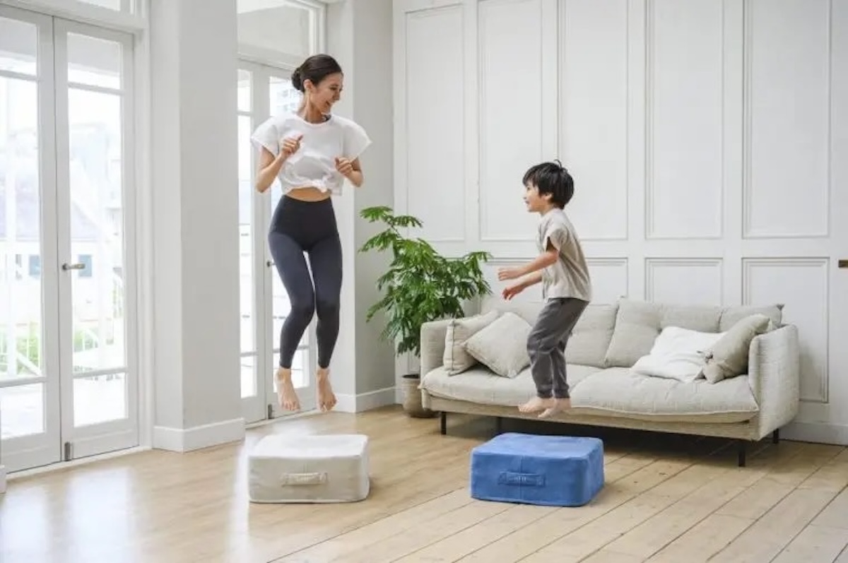 水泳よりも消費カロリーが高いといわれるジャンプ運動。本製品は、高反発、高弾力の3次元ファイバーを採用し、本物のトランポリンのような跳び心地を実現した。音を吸収する5層構造で大人が使用しても安心の静音設計。