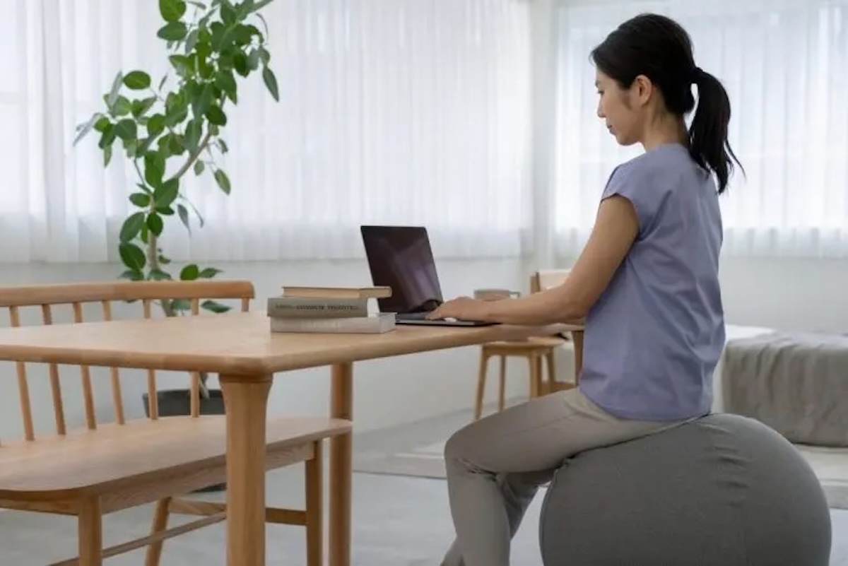 イスのような「バランスボール」に座りながら体幹をエクササイズ