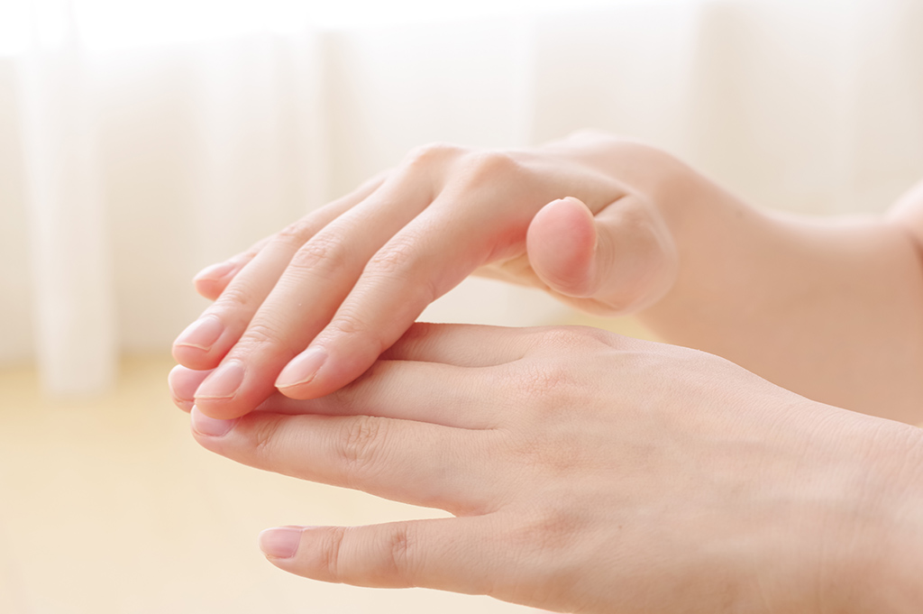 「爪の生え際には自律神経のバランスを整える『井穴(せいけつ)』というツボがあり、そこを刺激すると、リラックスできたり、免疫力が高まると言われています。乳化保湿をしたあとに、親指から人差し指、中指……の順番に爪の生え際を指の腹で挟んで押しもみすると、健康にもなって一石二鳥です」