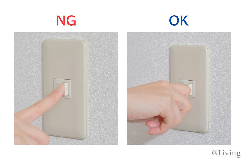 エレベーターのボタンや照明スイッチを指先で押すと、爪と指がはがれてピンクの部分が減ってしまいます。一方、指の関節で押すと、爪と指がはがれず、ピンクの部分が伸びやすくなります。