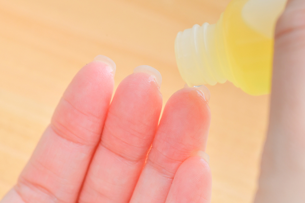 4.指先についたオイルと水を混ぜ合わせて乳化させる