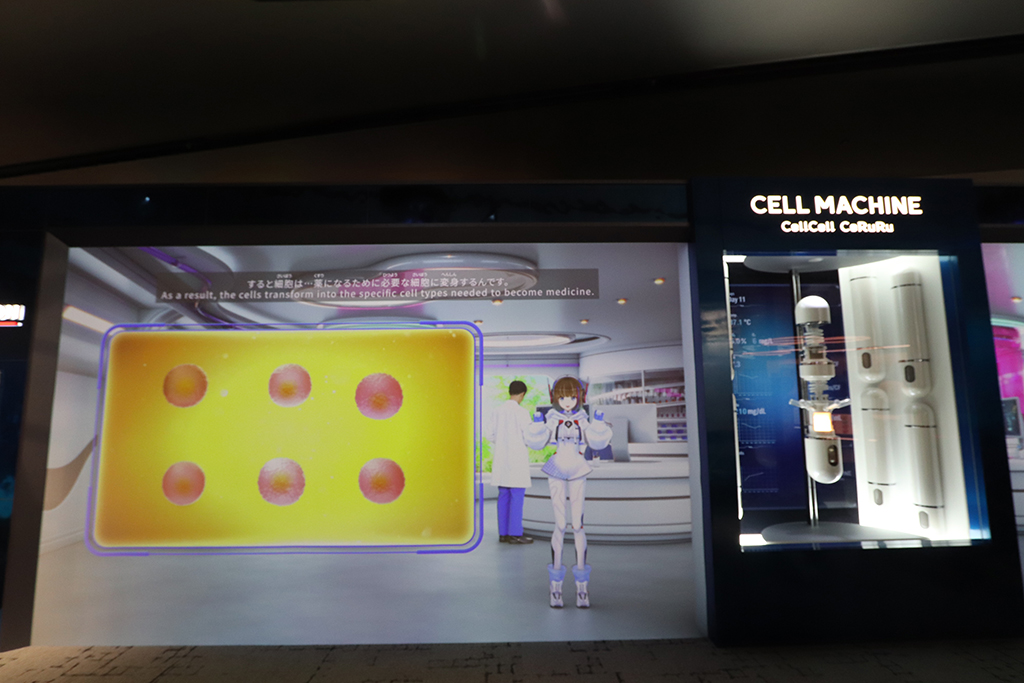 2050年頃を想定した展示ブース「ミライの都市」では、さまざまな再生医療を体験できます。そのなかのひとつが、「細胞デザインステーション」。